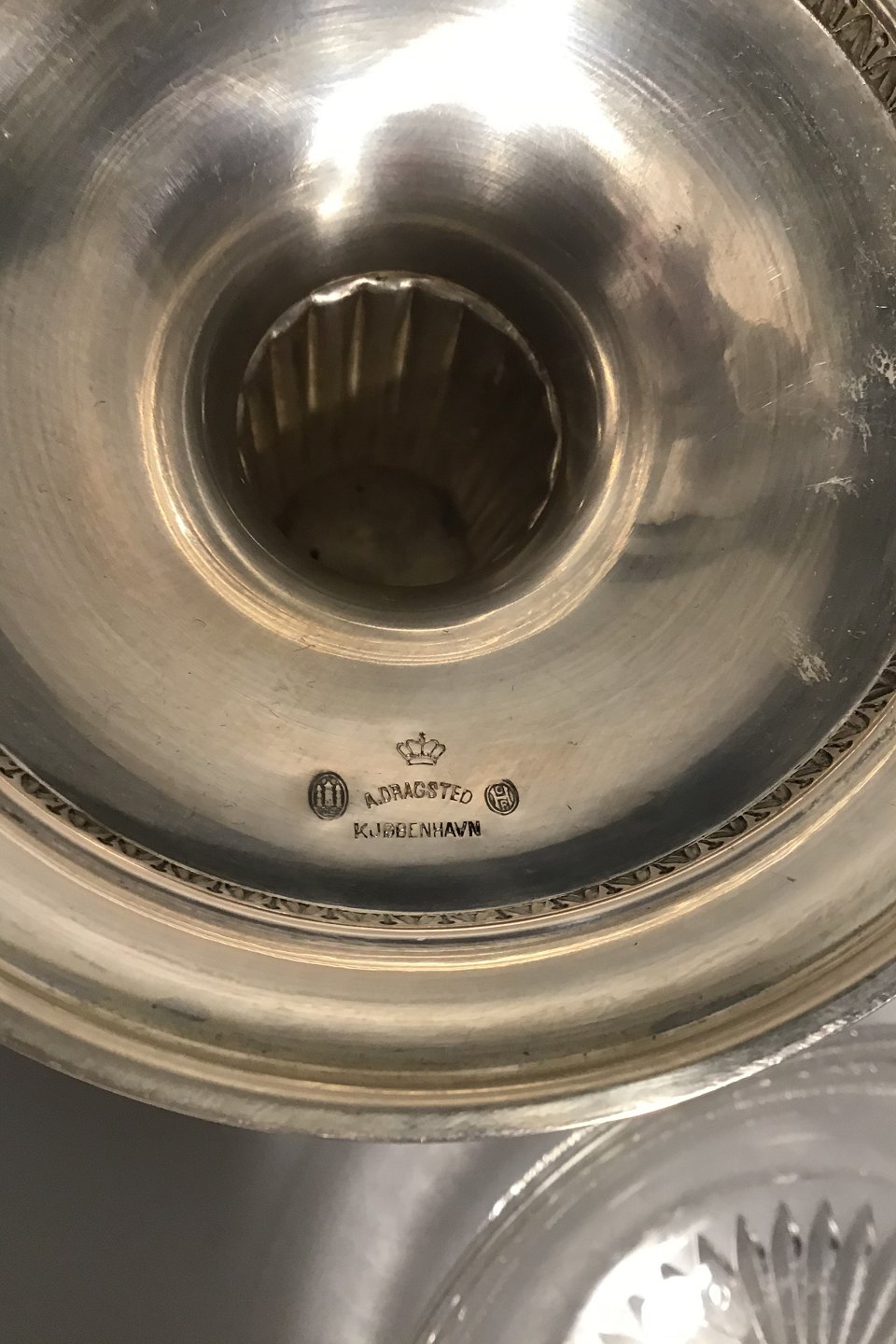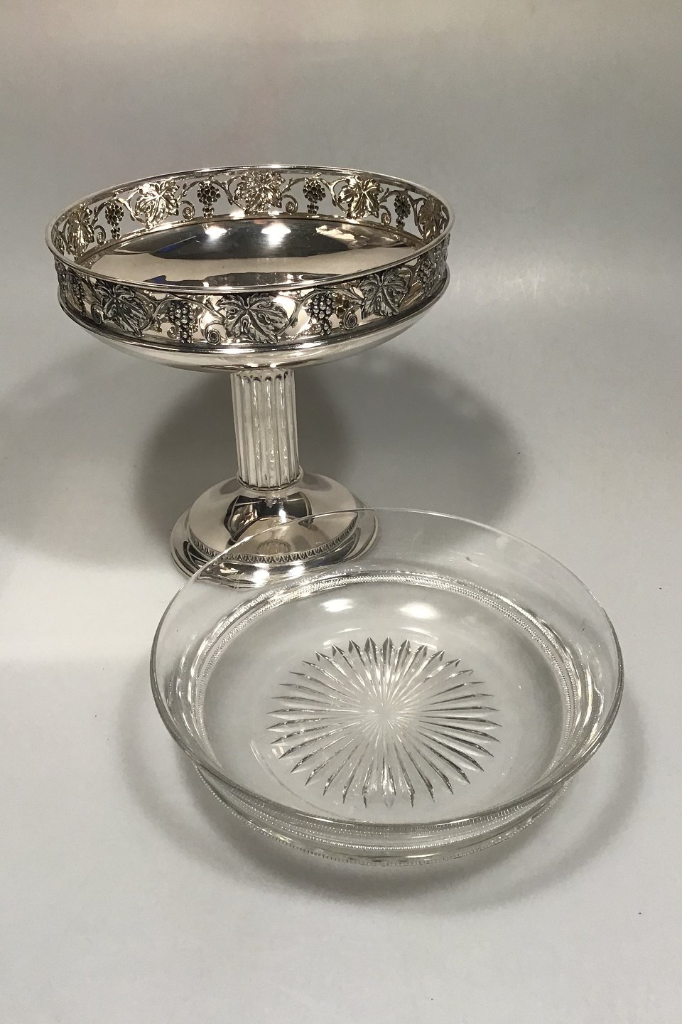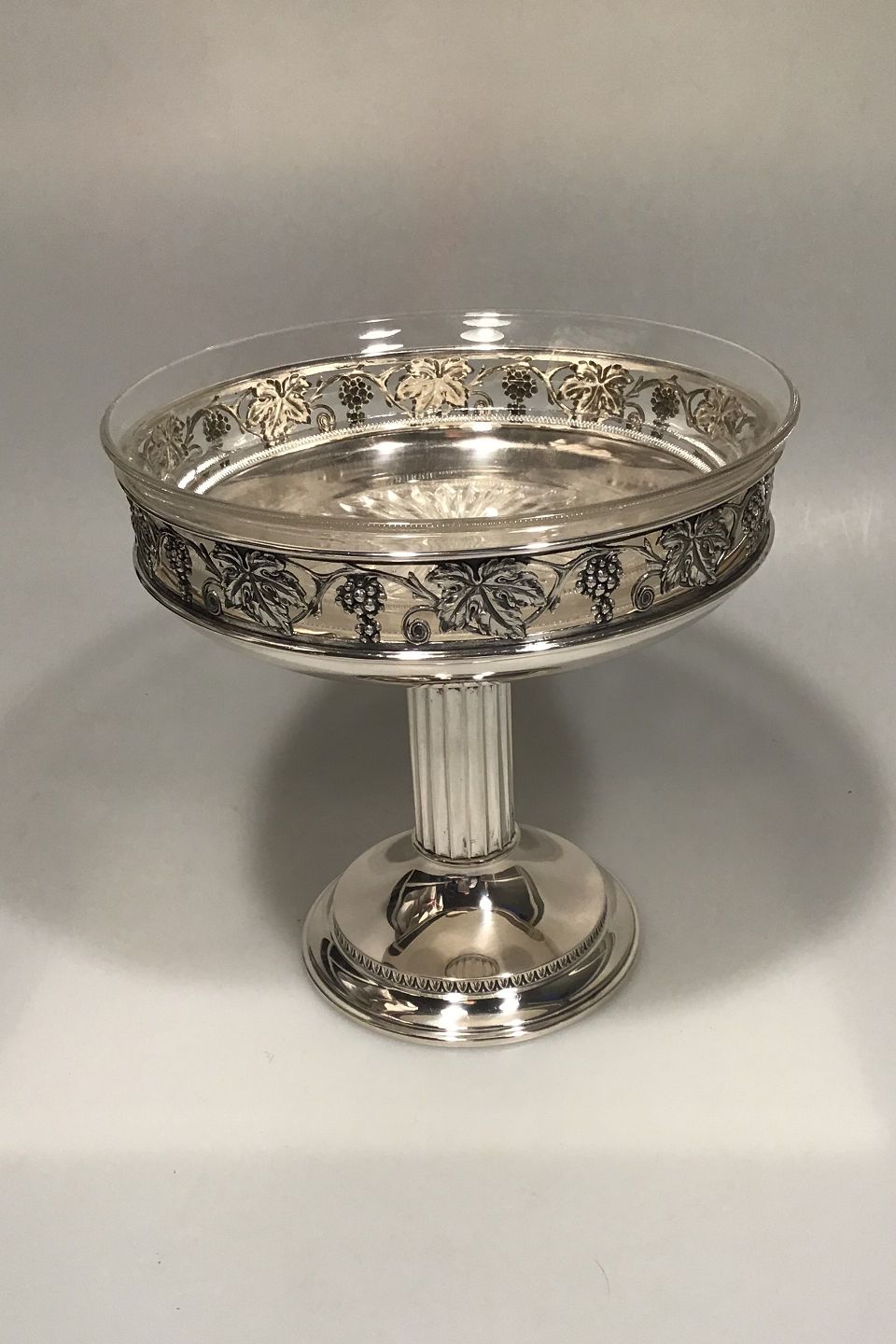 A. Dragsted Silver Pedistal Bowl with glass insert. Grape motif. H 19 cm(7 31/64 in )Diam 19 cm(7 31/64 in) Combined Weight 917 gr/32.35 oz