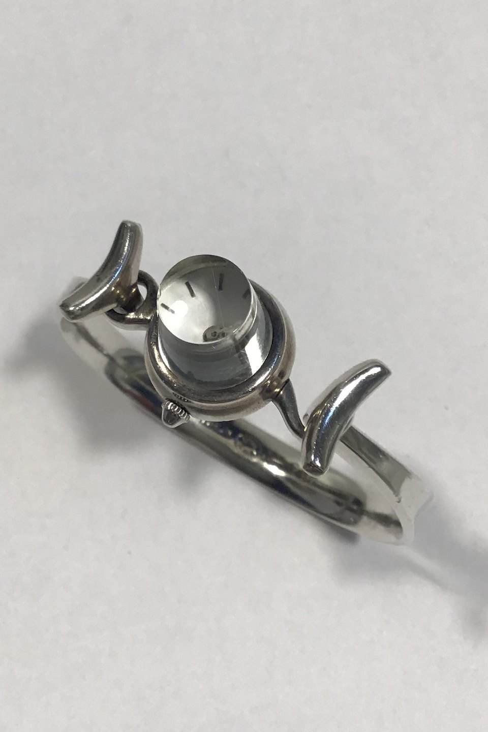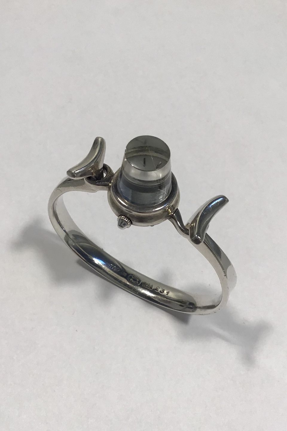 Georg Jensen Sterling Silver Bangle Watch with Rock Crystal Face No 231 Designed by Vivianna Torun Bülow-Hübe. Measures 5.6 cm / 2.20" diam. Weight 41.6 g / 1.47 oz.