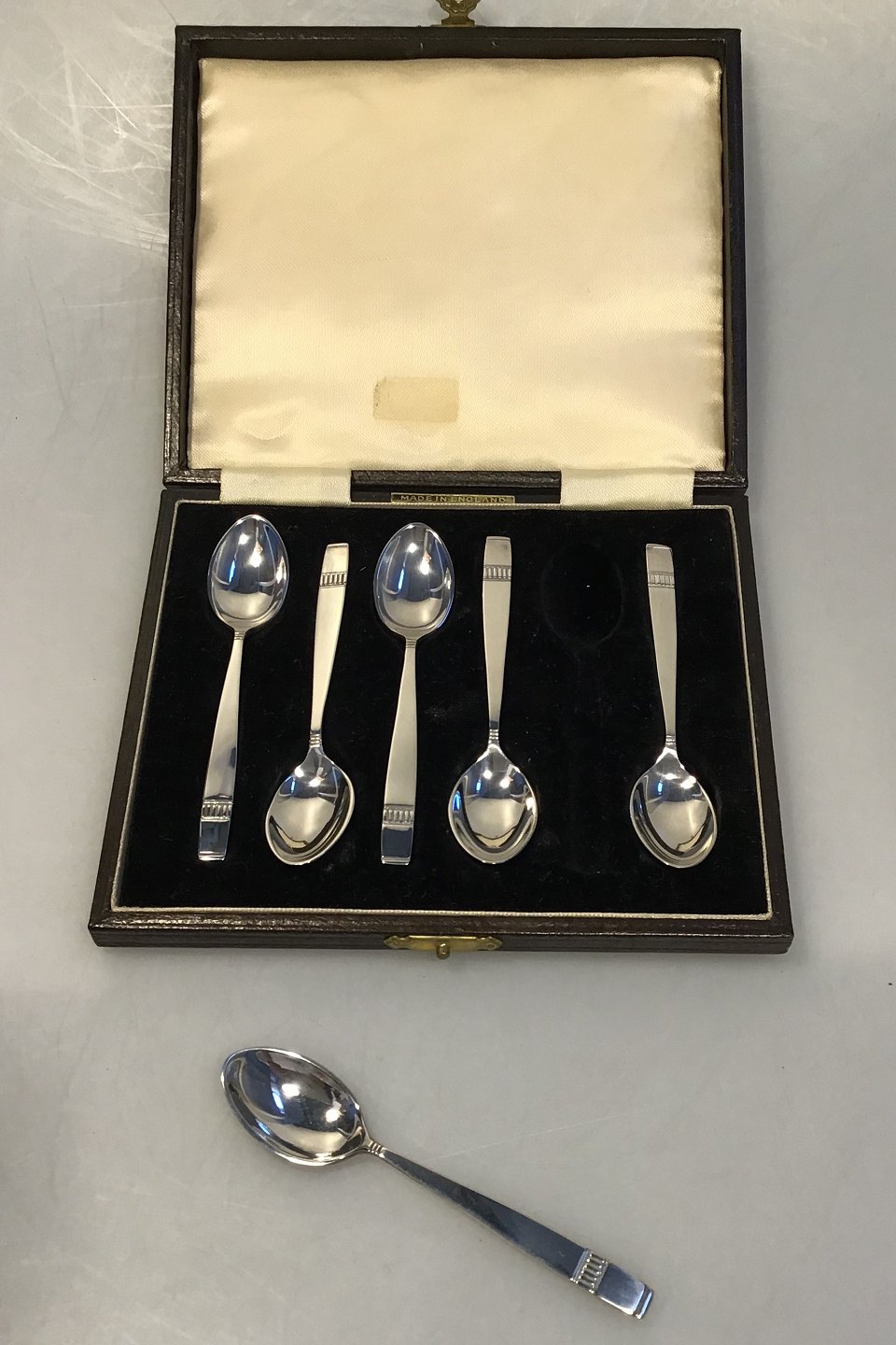 6 English Sterling Silver Coffee Spoons in Box Barker Brothers Silver Ltd Birmingham The Spoon measures 9.5 cm(3 47/64)