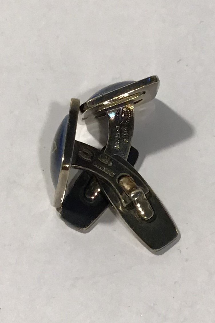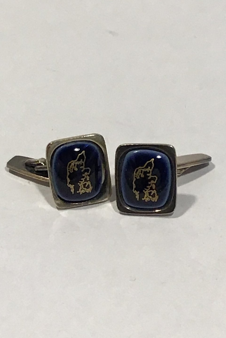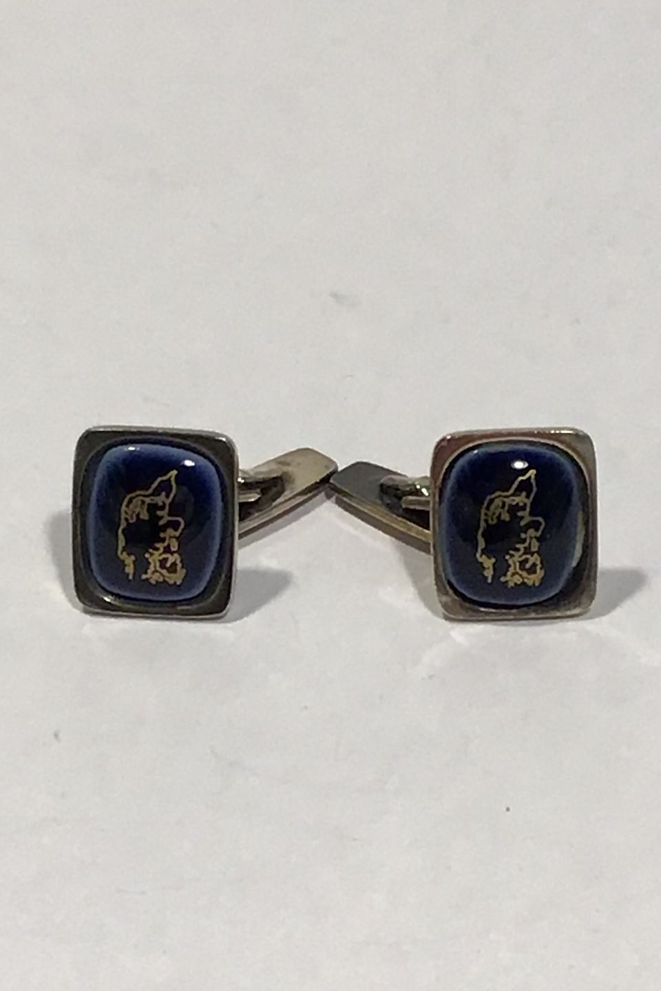 Georg Jensen/Royal Copenhagen Sterling Silver and porcelain Cufflinks (Jutland and Funen) Measures 1.5 cm x 1.8 cm(0 19/32 in x 0 45/64 in) Weight 11.5 gr./0.41 oz Weight 11.5 gr/0.40 oz