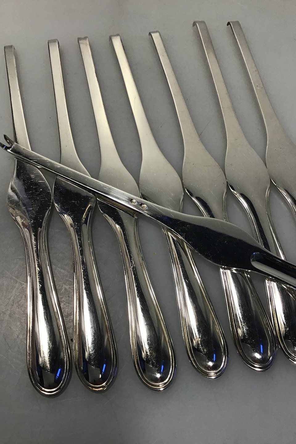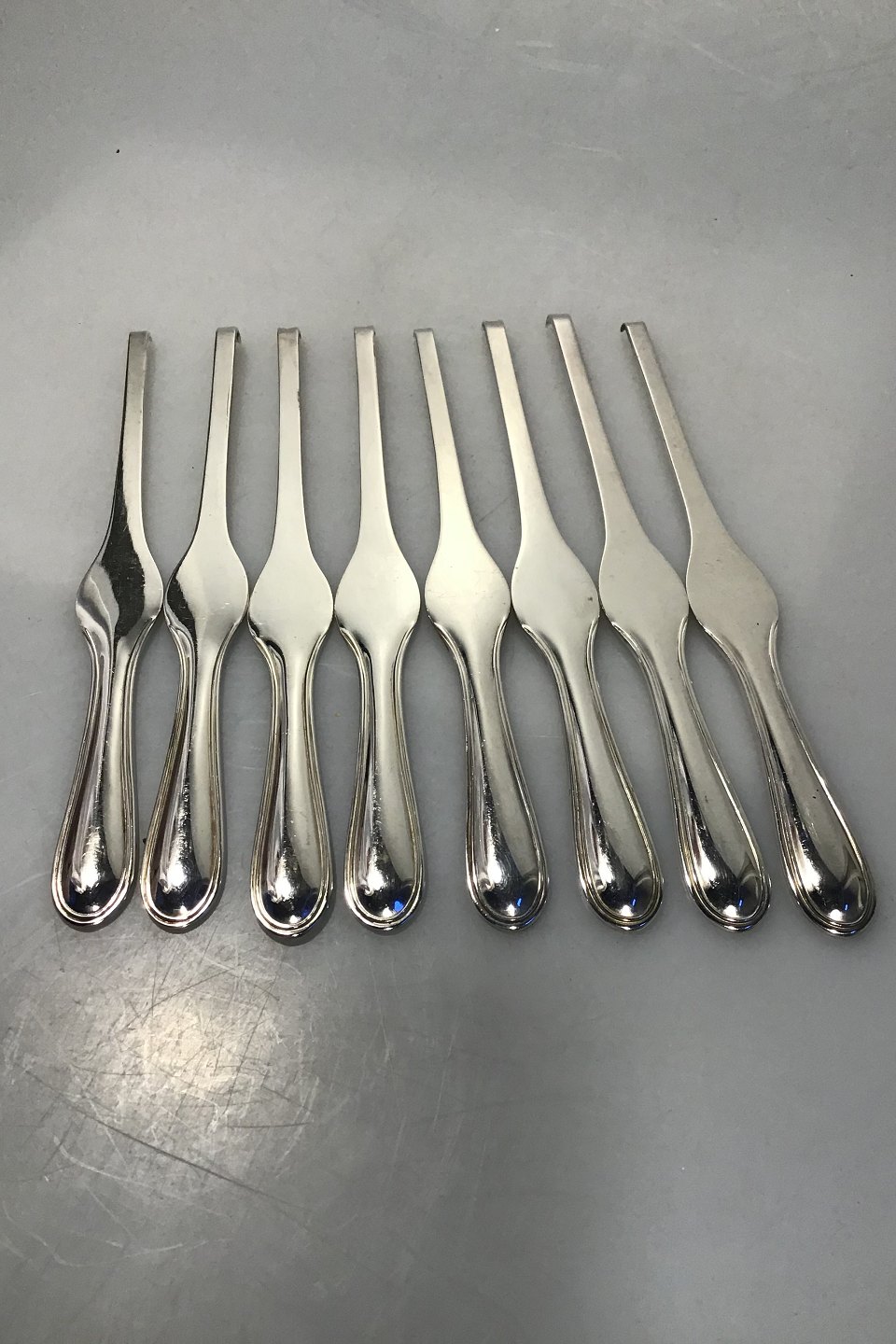W&S Sørensen Dobbeltriflet(Old Danish) Silver Lobster Forks Set (8) L 19.3 cm(7 19/32 in)