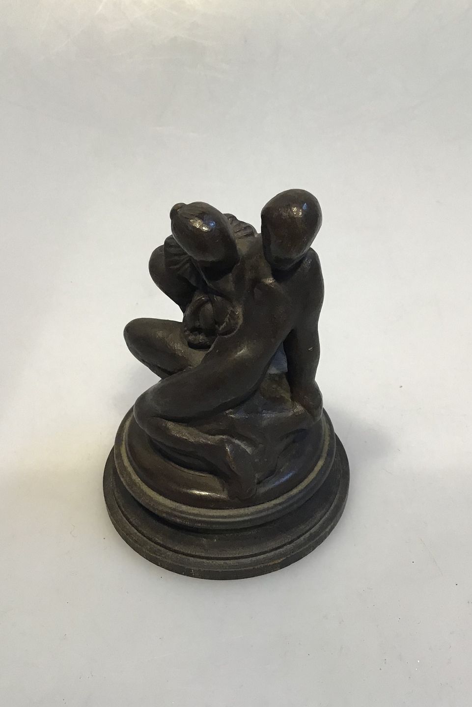 Gerhard Henning: Lovers, 1913. Signed monogram. Marked Expl. 3. Figurine of dark patinated bronze on a wooden base. H. 10 cm(3 15/16 in)