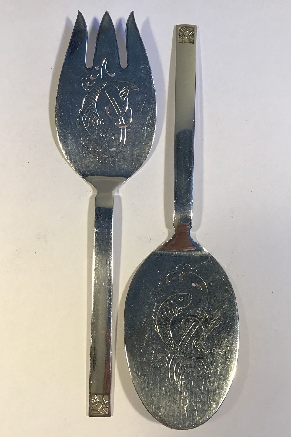 Evald Nielsen Sterling Silver No 33 Fish Serving Set (2) Measures L 24 cm (9 29/64 in")