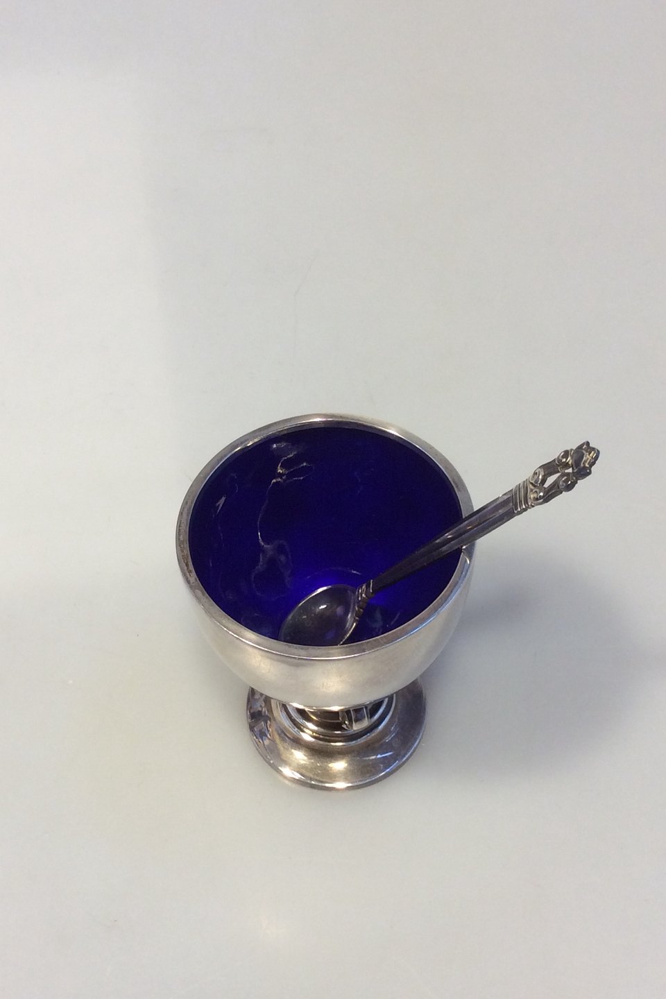 Georg Jensen Acorn Sterling Silver Mustard pot with with enamel and spoon No 741