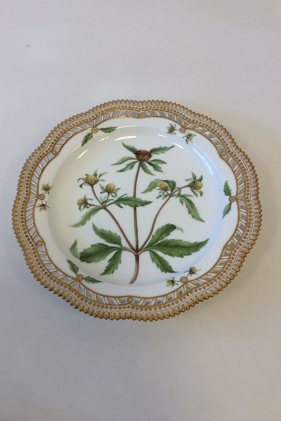 Royal Copenhagen Flora Danica Charger plate with pierced border No 20/3574. Measures 28 cm / 11 1/32 in. 1st Quality. Latin name: "Bidens tripartitus L."
