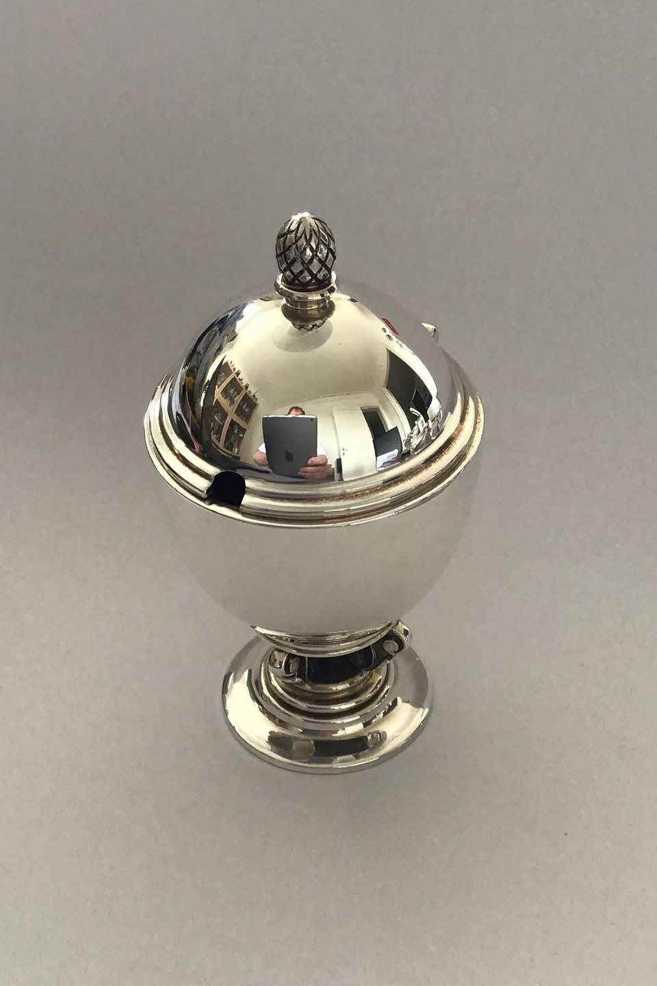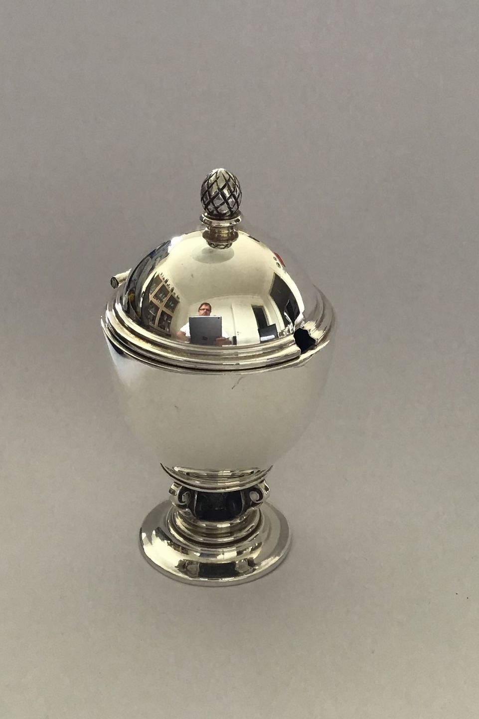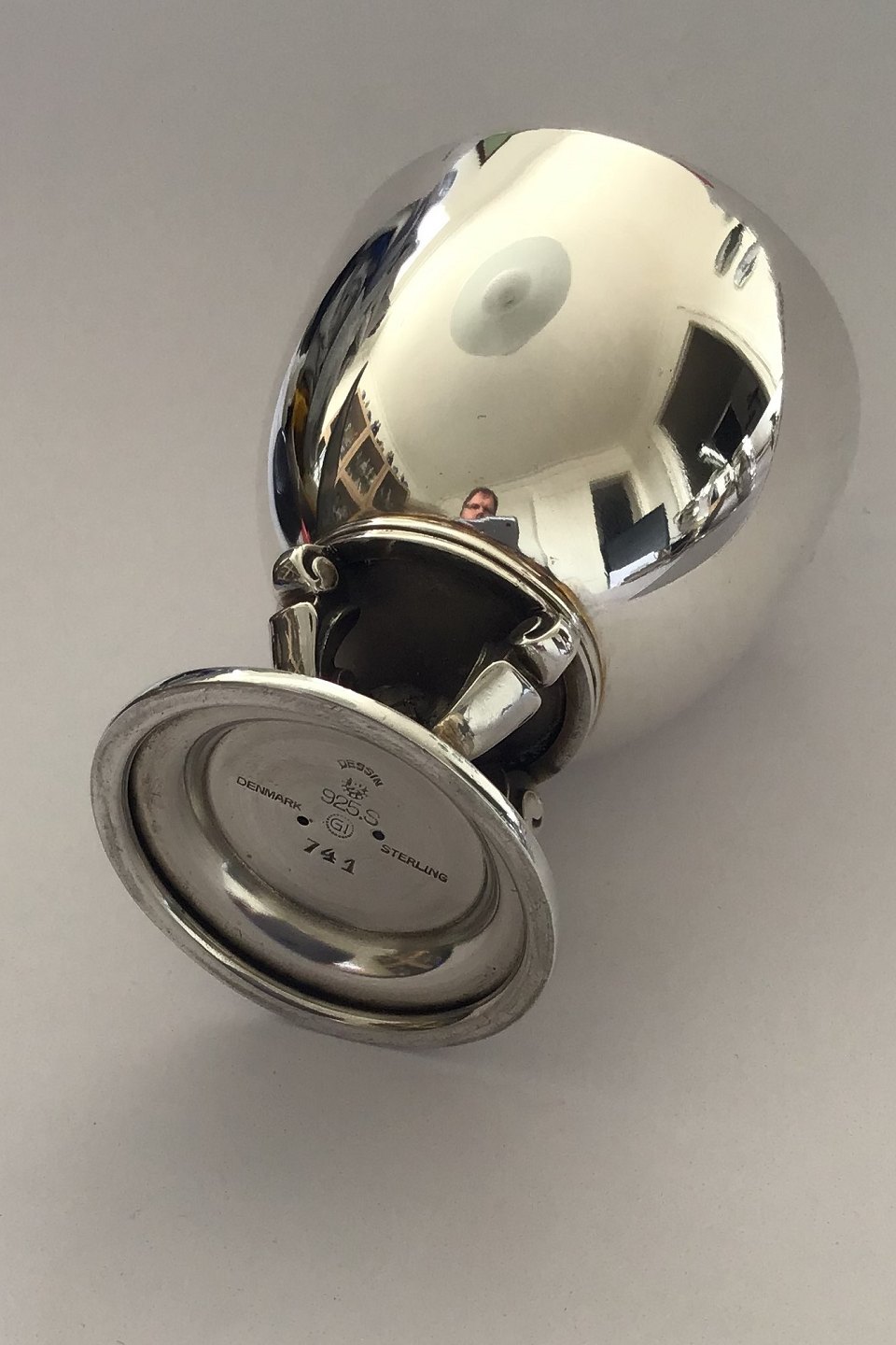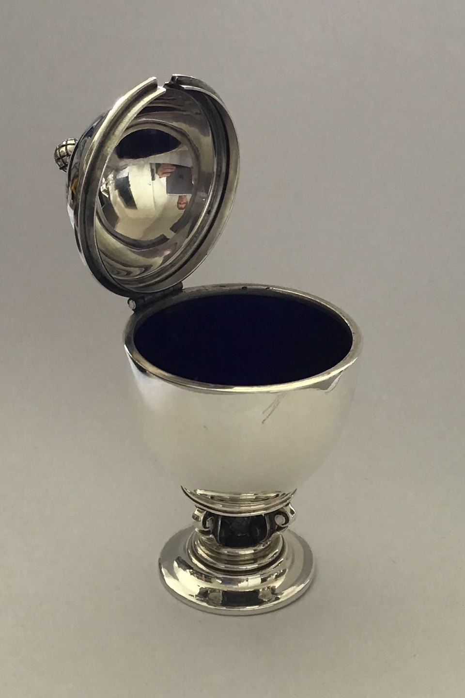 Georg Jensen Sterling Silver Acorn Eggshaped Mustard Cup No 741 Blue Enamel Measures H 10 cm (3 15/16 in) Diam 5.3(2 3/32 in)