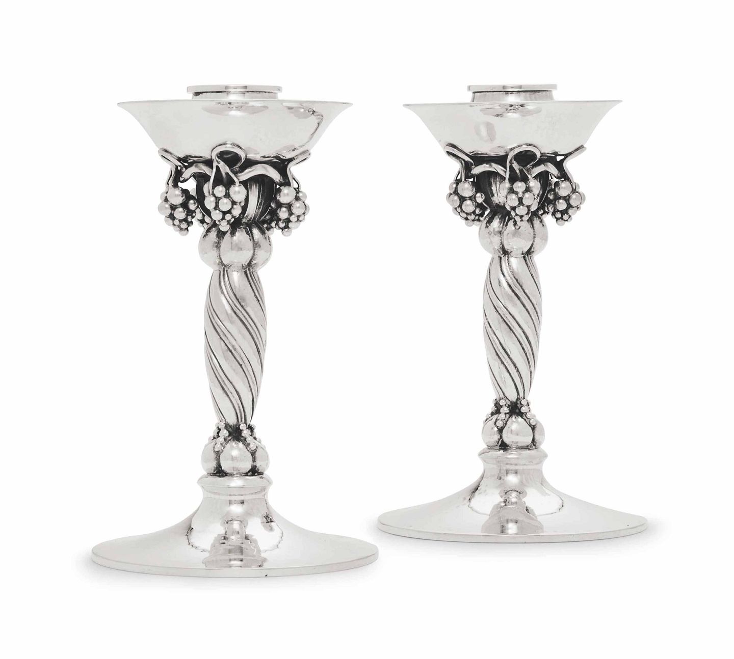 Pair of Georg Jensen Sterling Silver Grape Candlesticks No 263 A