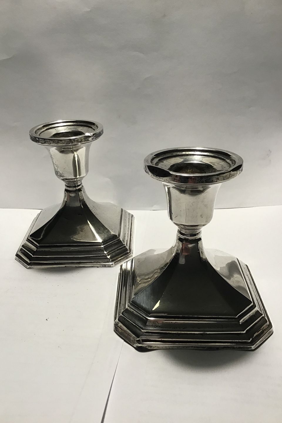 KMK Sterling Silver Candlesticks Measures H 9 cm(3 35/64 in) Combined Weight 660 gr /23.25 oz(Weighted)(Signs of usage)