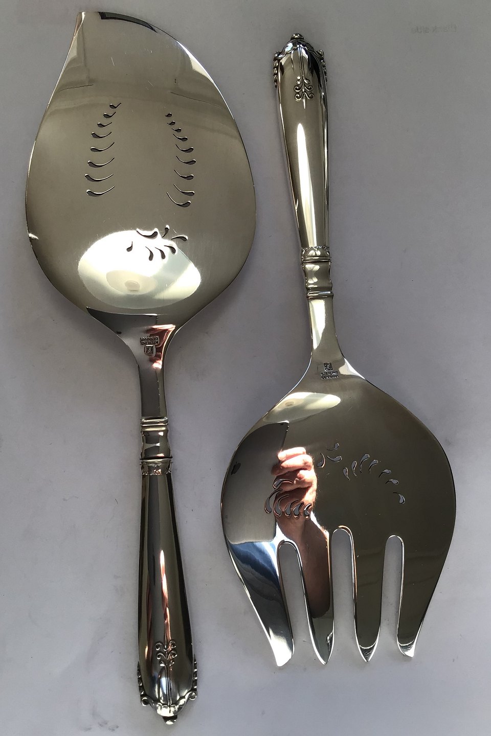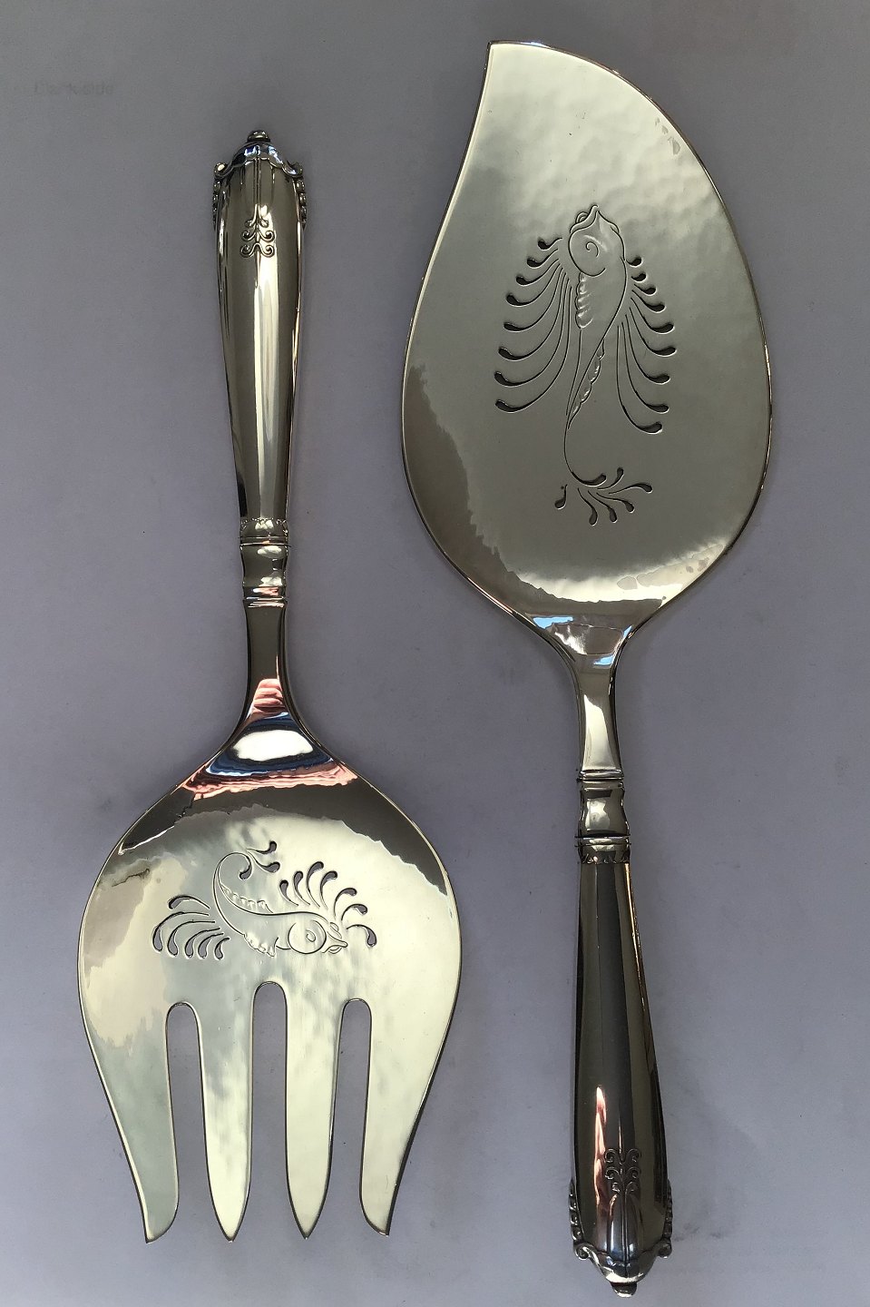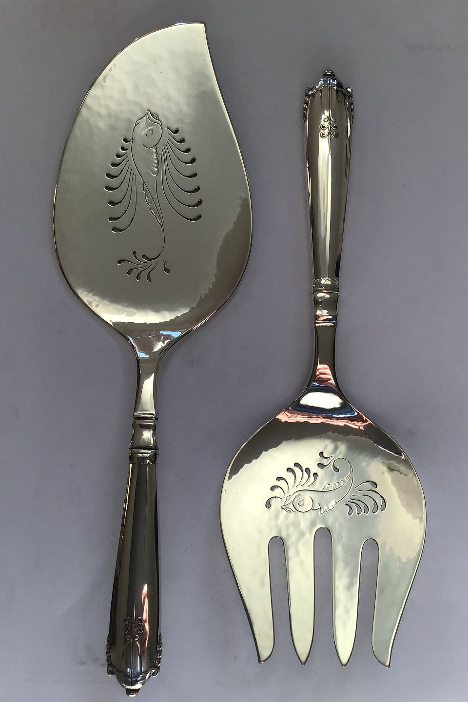 Georg Jensen Sterling Silver Akkeleje Fish Serving Set Measures Server 26 cm(10 15/64 in) Fork 23 cm(9 1/16 in)