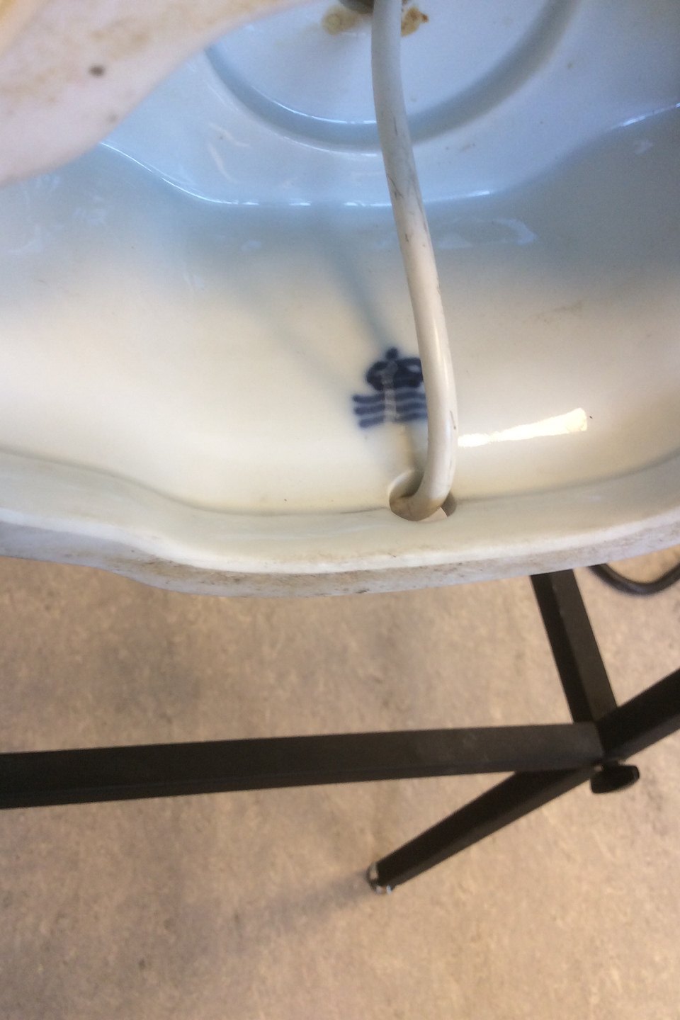 Royal Copenhagen A pair of baluster-shaped lamps on base decorated with garlands, Ram heads and gold. With Juliane Marie Stamp from 1905-12. Mounted with wire.