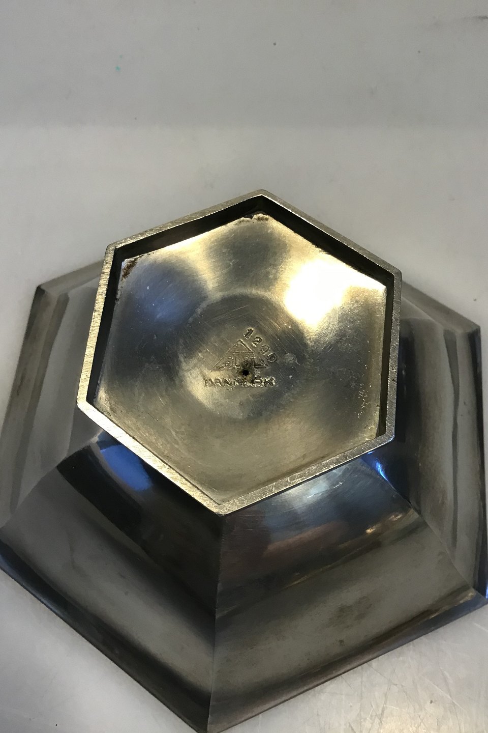 Just Andersen Pewter Hexagonal Bowl No 1290 Measures H 7 cm(2 3/4 in) Diam 15.5 cm(6 7/64 in)