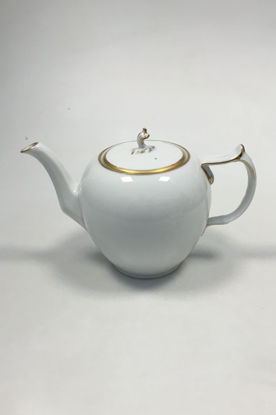 Royal Copenhagen White Porcelain with Gold Tea Pot No 1275/9103. Measures 24 cm / 9 29/64 in.