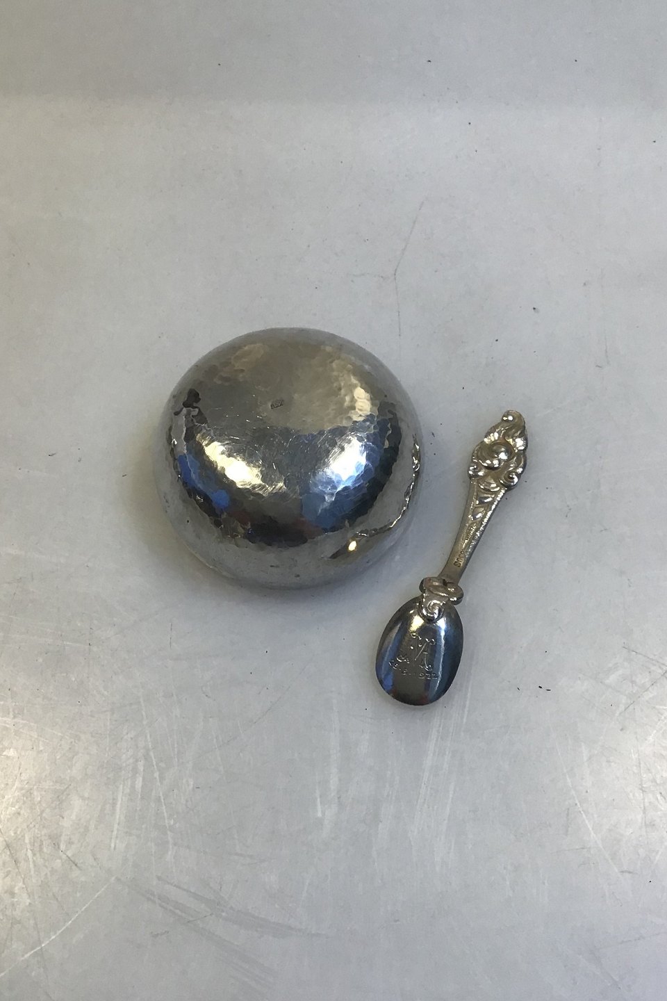 Sterling Silver Salt Cellar with Silver Salt Spoon Measures Diam 5 cm(1 31/32 in)