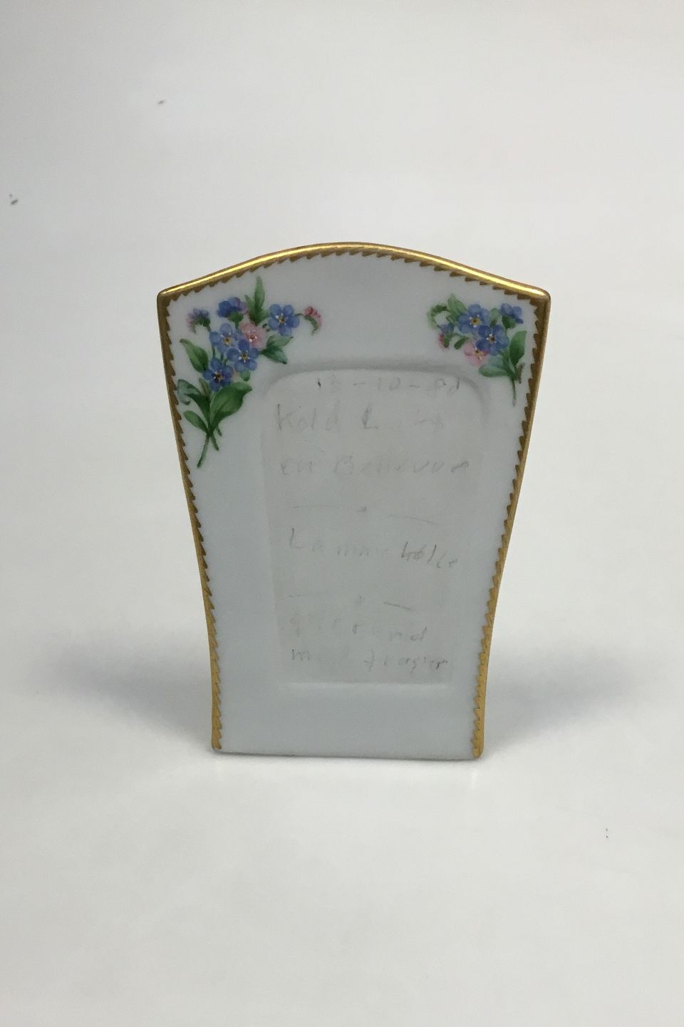 Royal Copenhagen Menu sign for table No 891. Decorated with Flowers, Gold edge and Goldsmiths