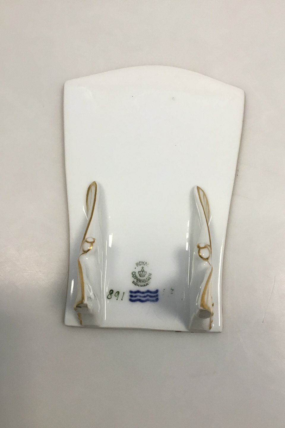 Royal Copenhagen Menu sign for table No 891. Decorated with Flowers, Gold edge and Goldsmiths. Measures 13 cm / 5 1/8 in.