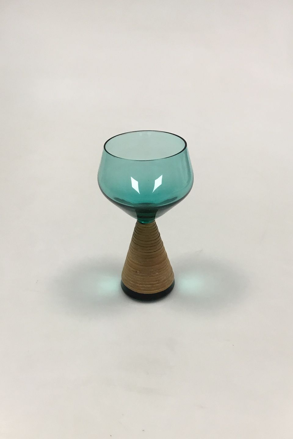 Kastrup Glassworks Opaline shape Green liqueur glass with bamboo wrapping. Jacob E. Bang 1957. Measures 11.4 cm / 4 31/64