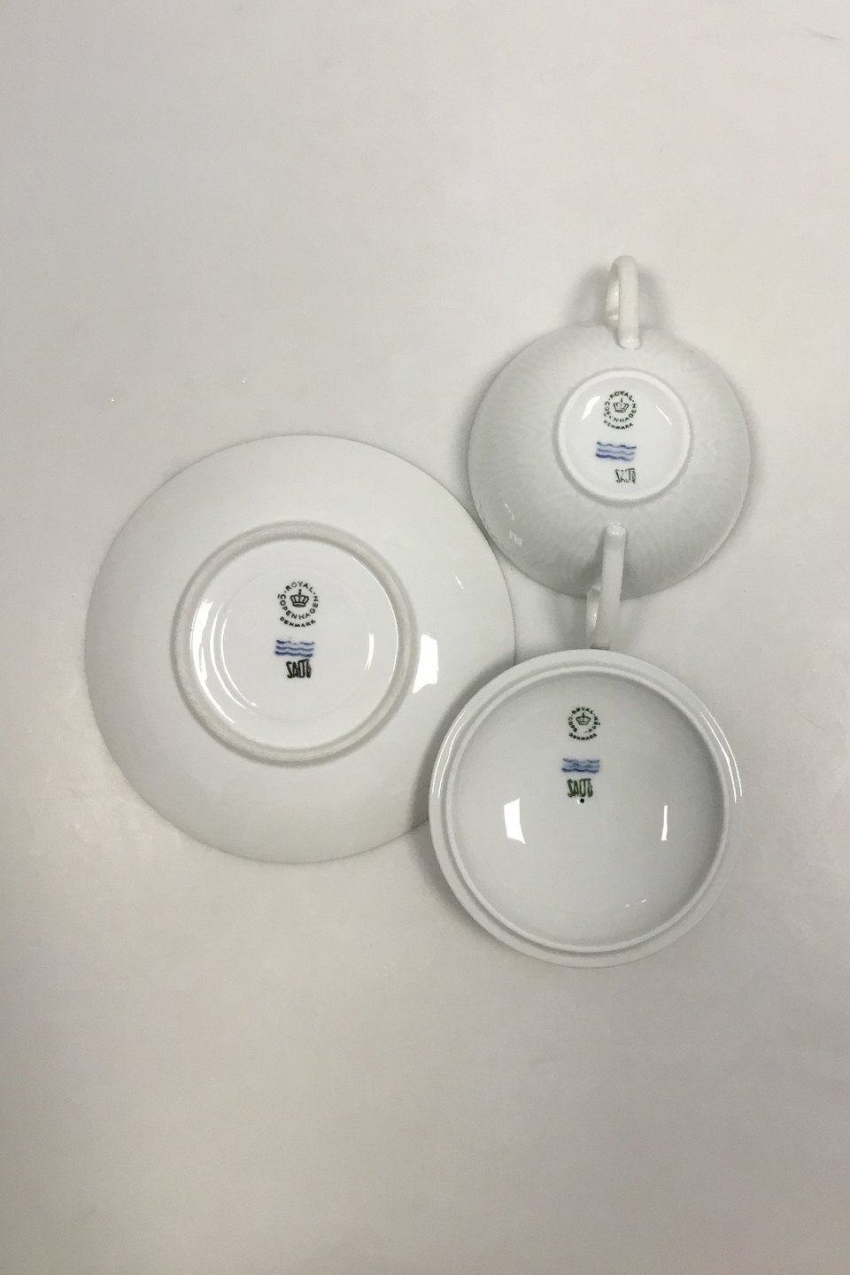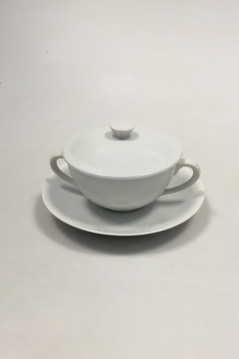 Royal Copenhagen Salto White Dinnerware Bouillon Cup and Saucer. Measures 5.3 cm / 2 3/32 in. x 10 cm / 3 15/16 in. dia. Saucer: 15.5 cm / 6 7/64 in.