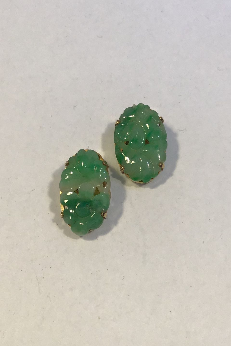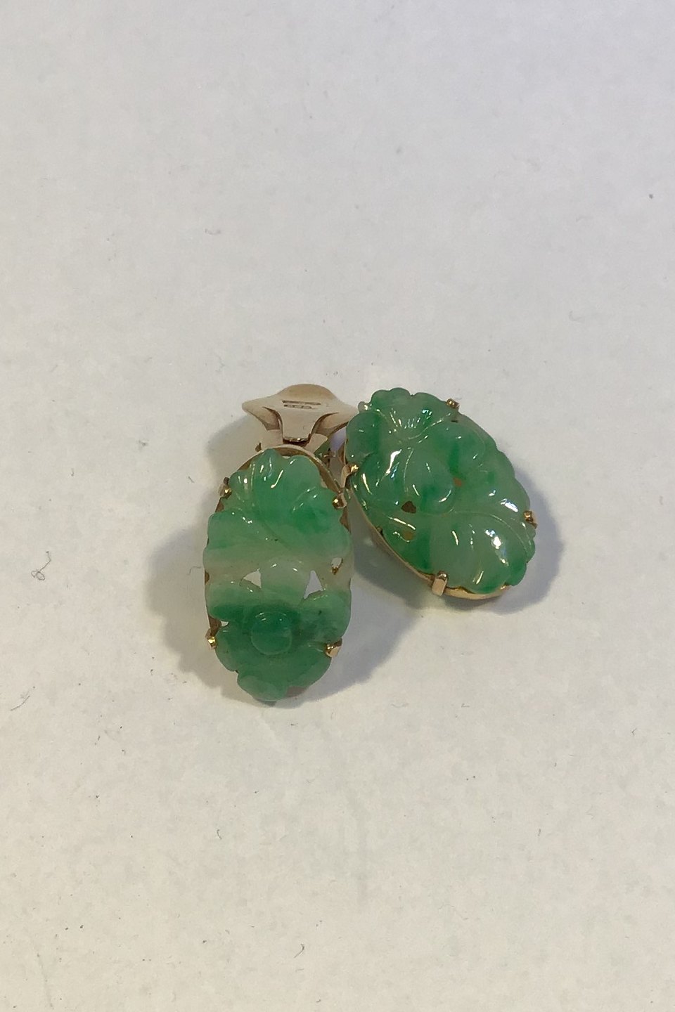 A Dragsted 14 K Guld Earrings (clips) with Jade