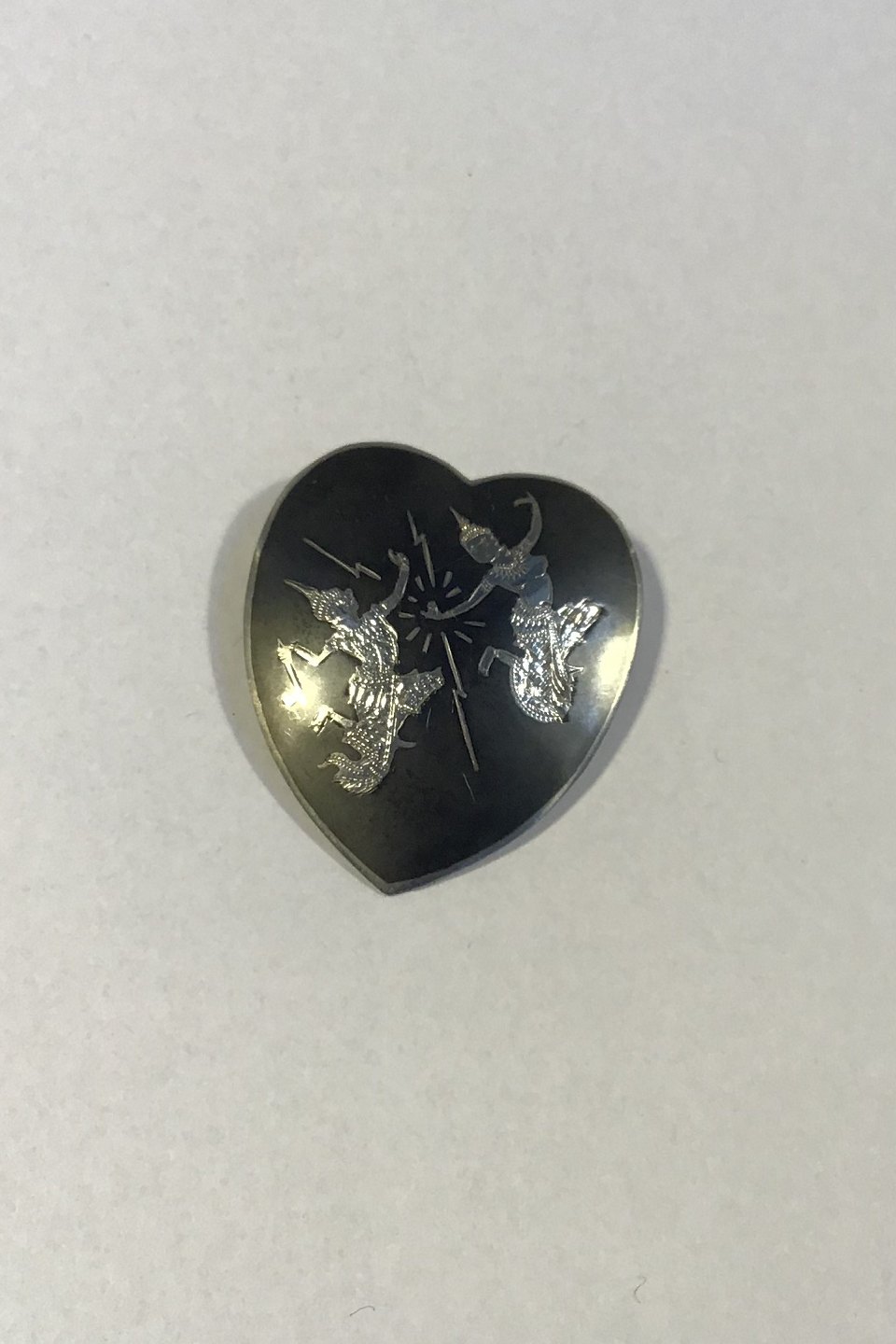 Siam(Thailand) Sterling Silver Brooch Temple Dancers Measures 3.6 cm x 4 cm(1 27/64 in x 1 37/64 in) Weight 7 gr/0.23 oz
