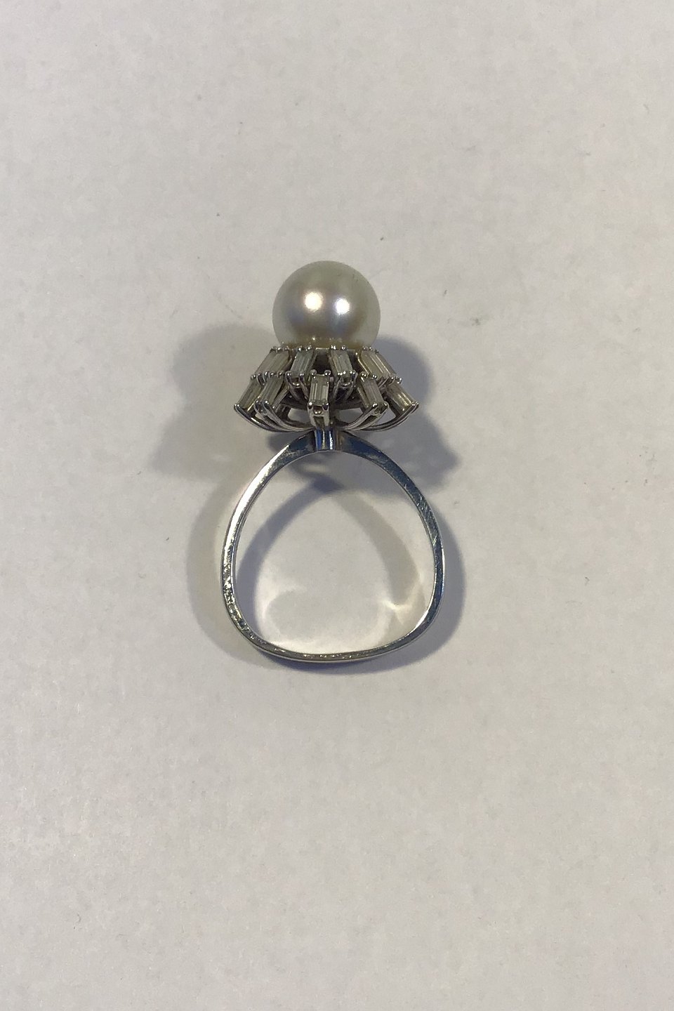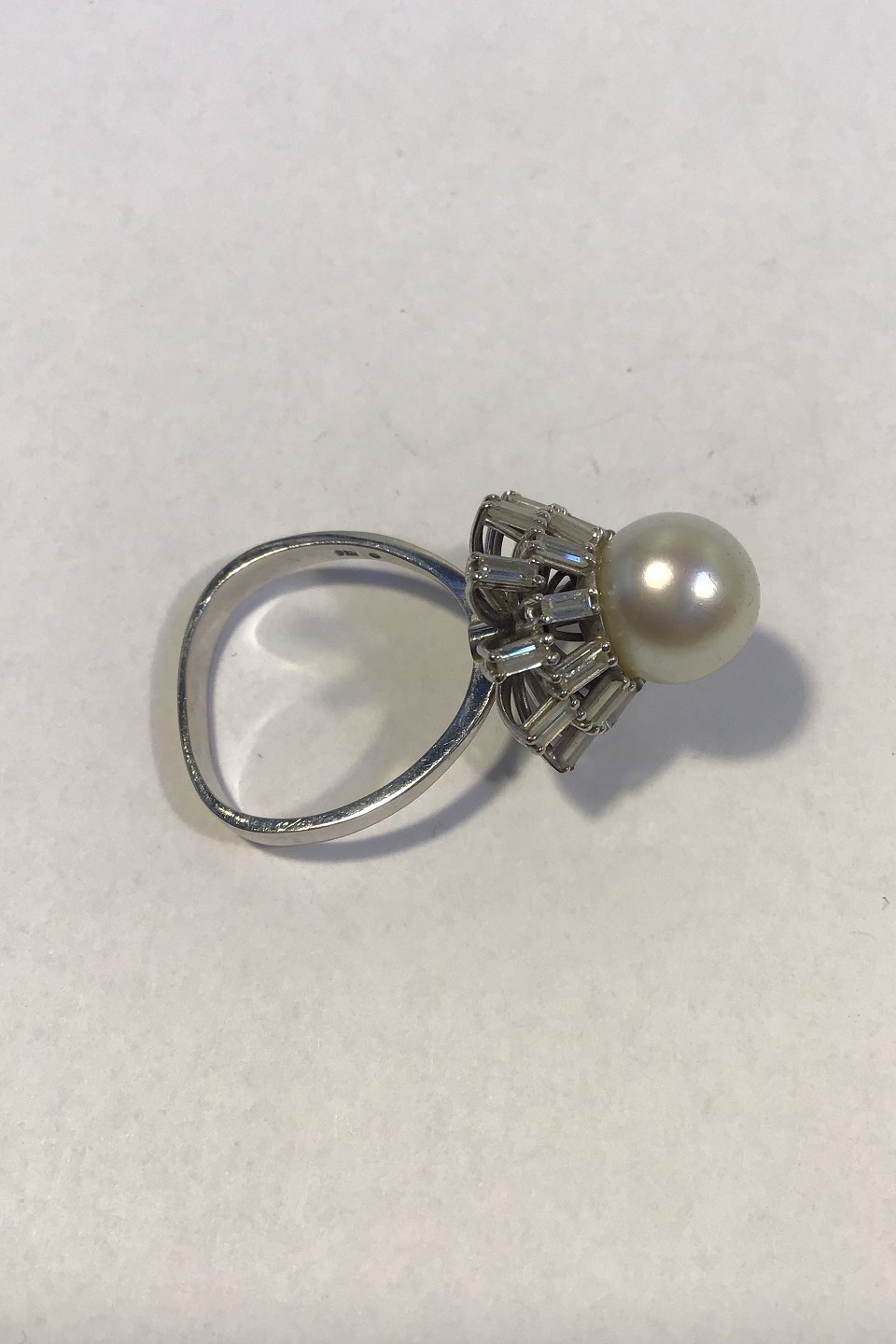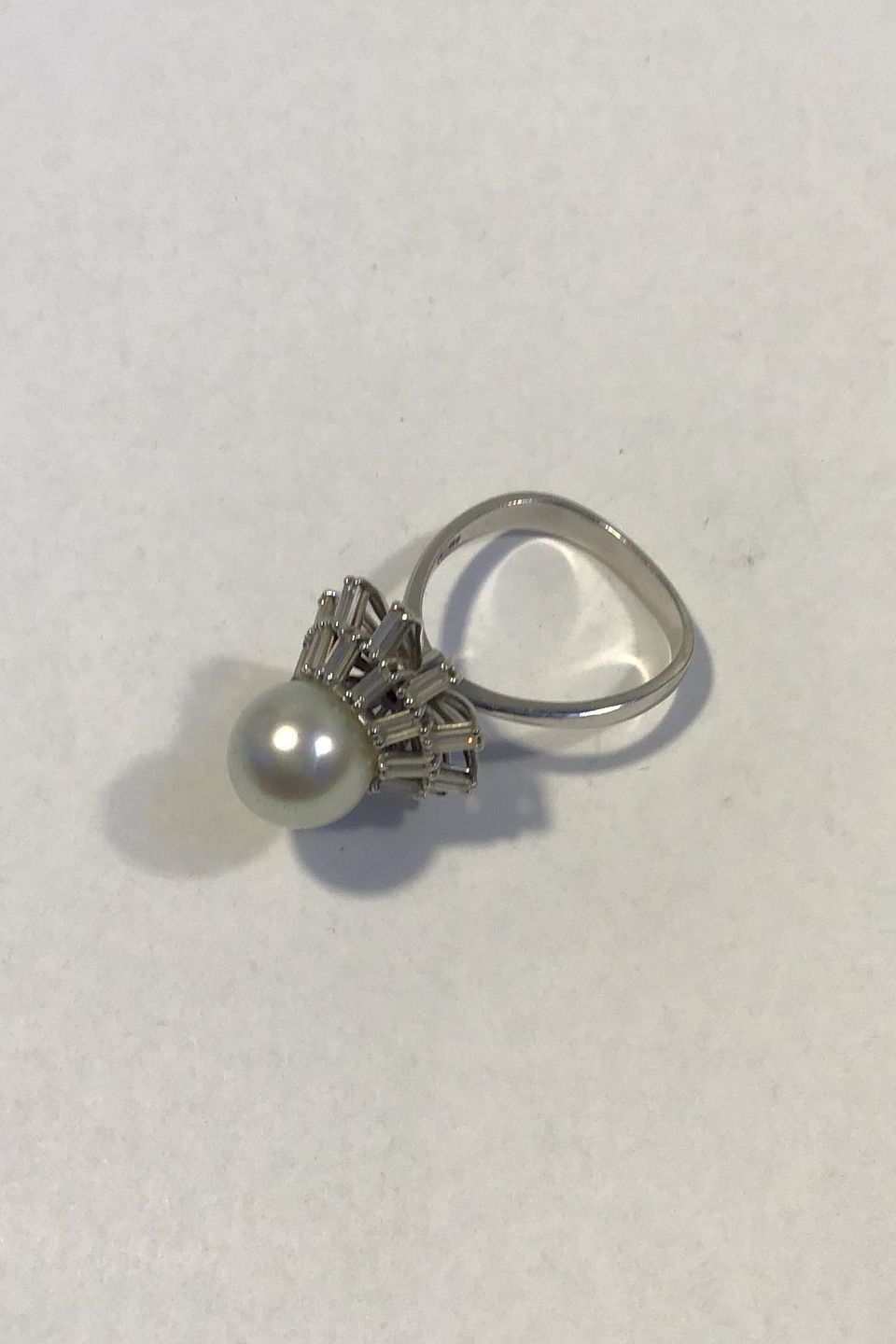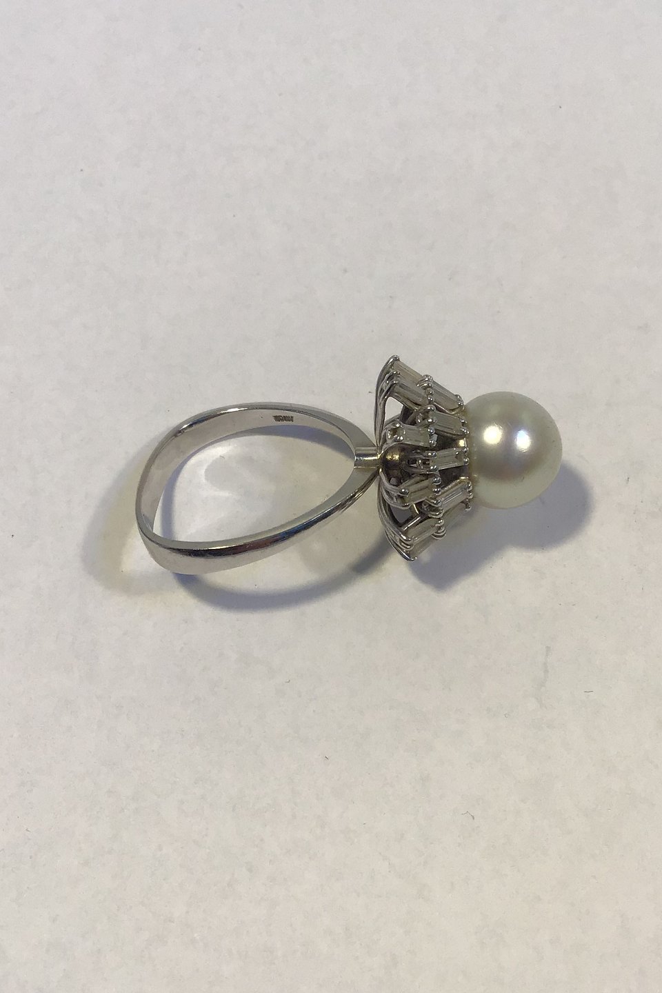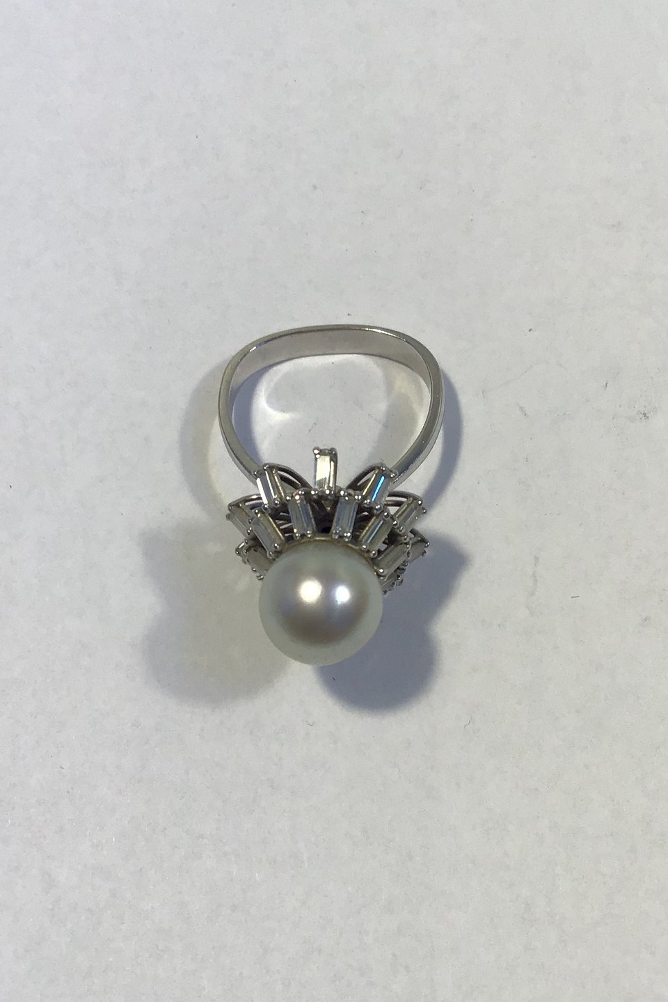 Georg Jensen & Wendel 18 K White Gold Ring with Pearl and Diamonds Ring Size 59(US 8 3/4) Weight 8.5 gr 0.30 oz