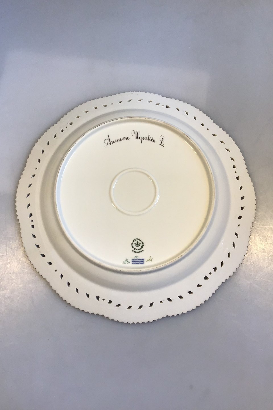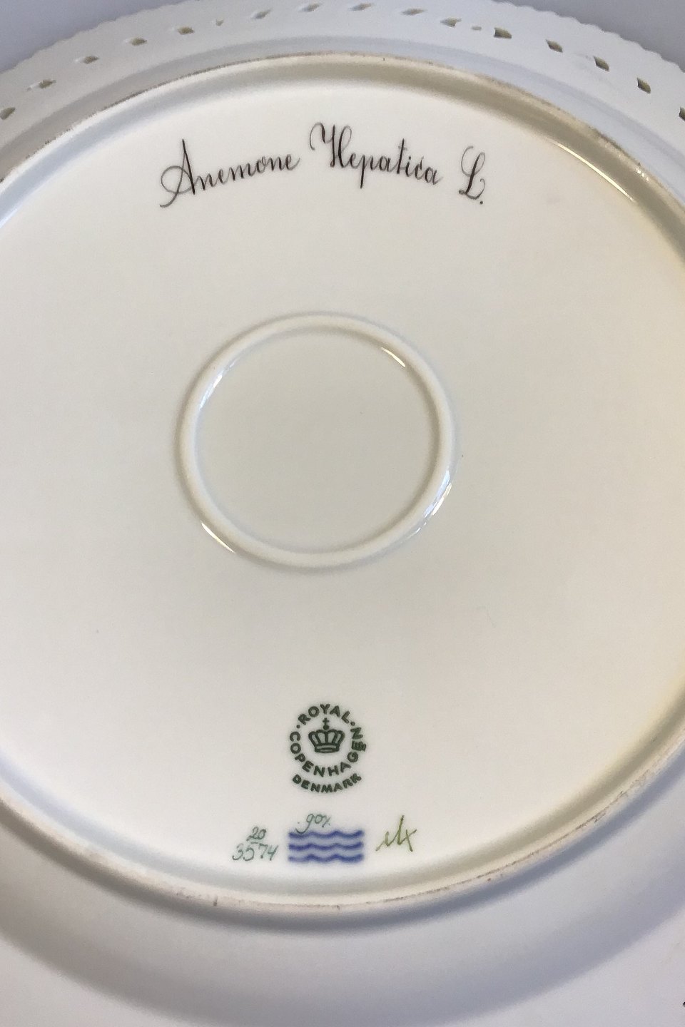 Royal Copenhagen Flora Danica Charger plate with pierced border No 20/3574. Latin name: "Anemone Hepatica L."Measures 28 cm / 11 1/32 in. 1st Quality.
