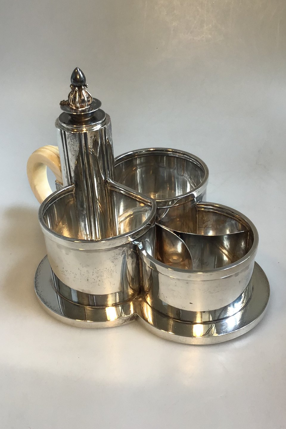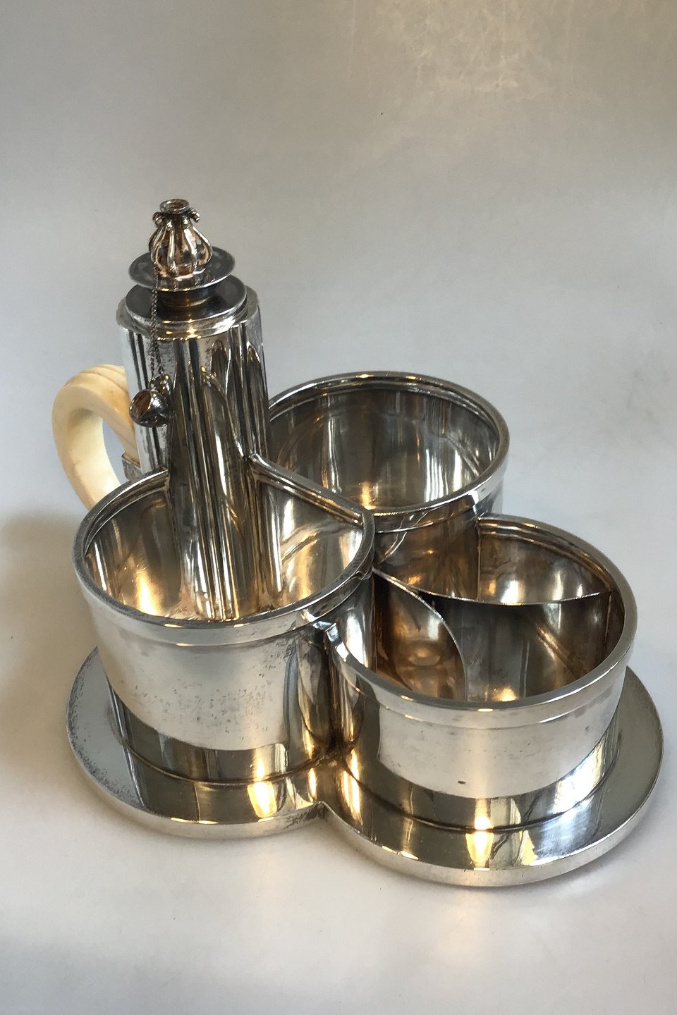Evald Nielsen Silver Tobacco set with carved ivory handle. (1937) Measures26.8 cm(10 35/64 in) Weight 1249 gr/44 oz