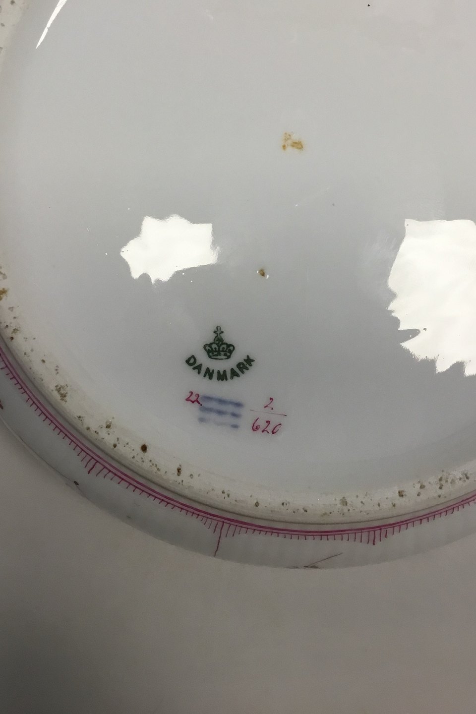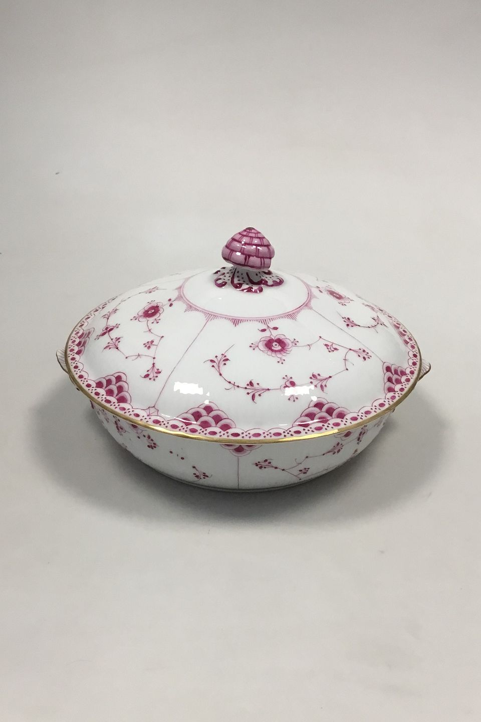 Royal Copenhagen Blue Fluted Red Ruby/Pink with Gold Edge Half Lace Lidded Bowl No 2/620. Measures 13 cm / 5 1/8 in. x 22 cm / 8 21/32 in.