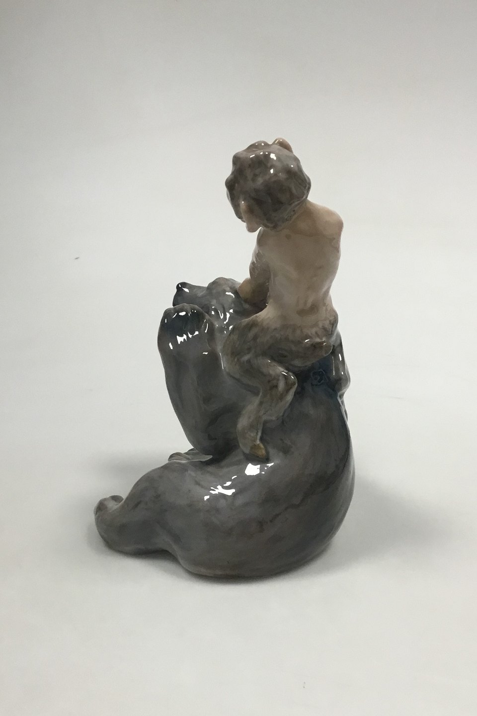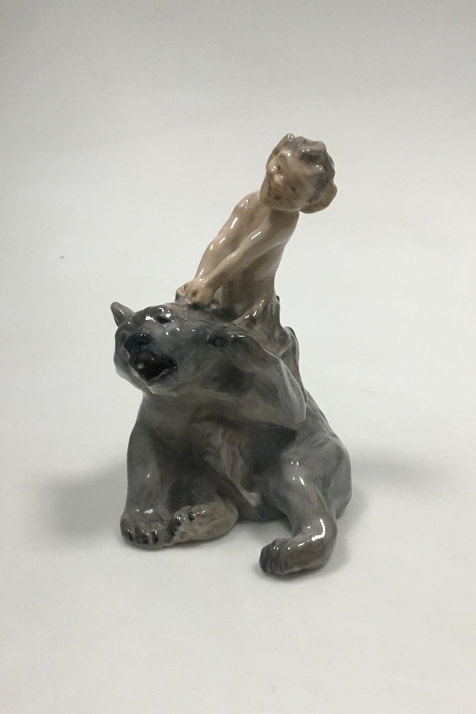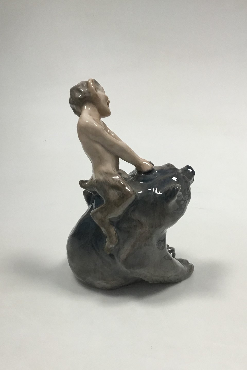 Royal Copenhagen Figure of faun pulling a bear in the ear No 1804. Designed by Knud Kyhn. From 1945. Measures 19 cm. 1st Quality
