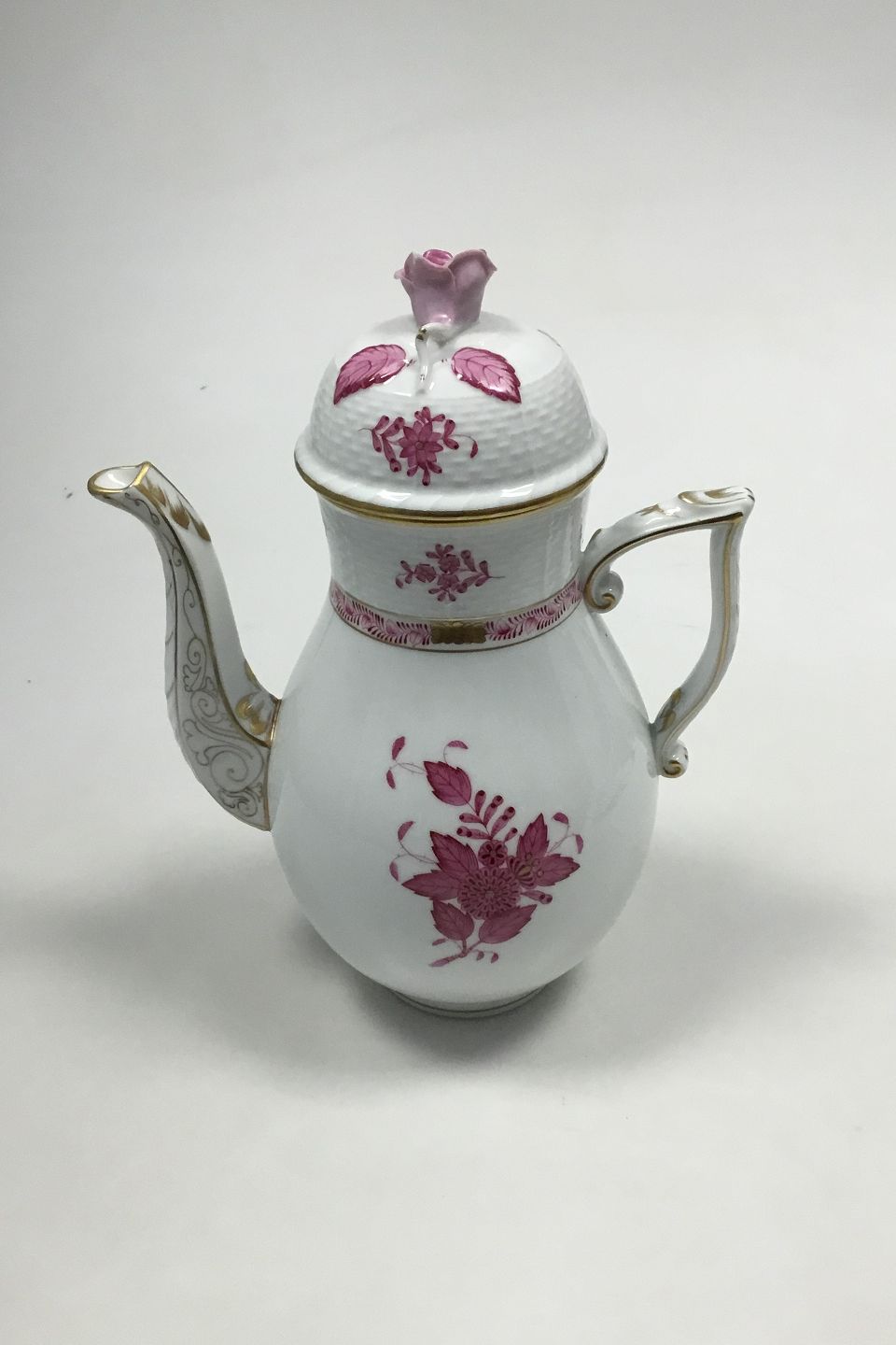 Herend Hungary Apponyi Purple Coffee Pot No 611. Measures 26 cm / 10 15/64 in. Small Chip on Flower