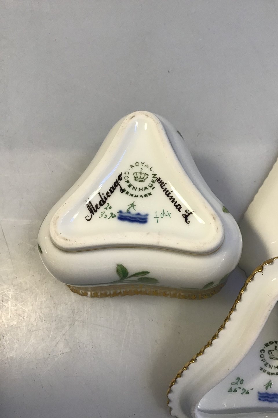 Royal Copenhagen Flora Danica 20/3575 + 20/3576 Triangular Custard Cup Latin Name: Medicago minima L. Measures H 9 cm Diam 10 cm