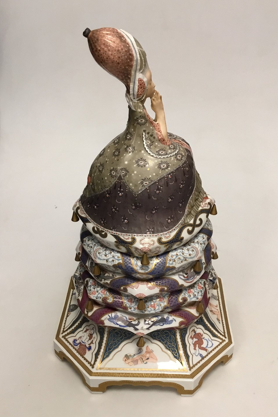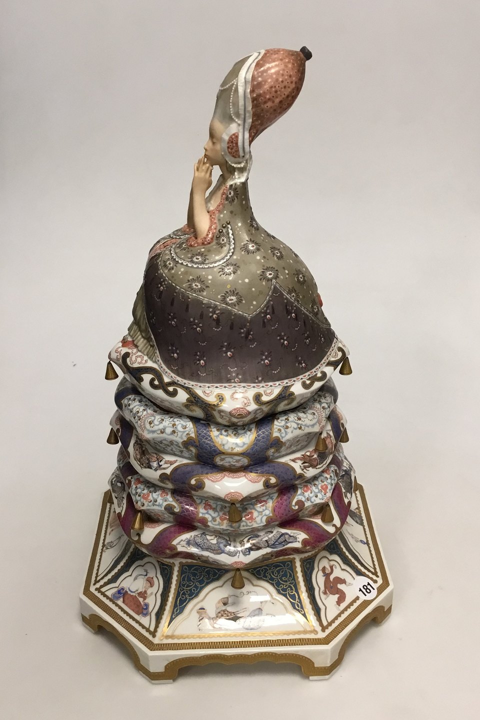 The Princess is 45 cm high; it has been painted with more than 80 colors. The Princess is a bonbonniere, which means that the top can be taken off.