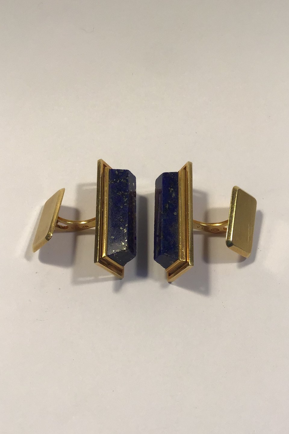 Georg Jensen 18K Gold Cufflinks No 810 Lapis Lazuli Measures 3 cm x 1.1 cm(1 3/16 in x ½ in) Combined weight 21.0 gr/0.74 oz