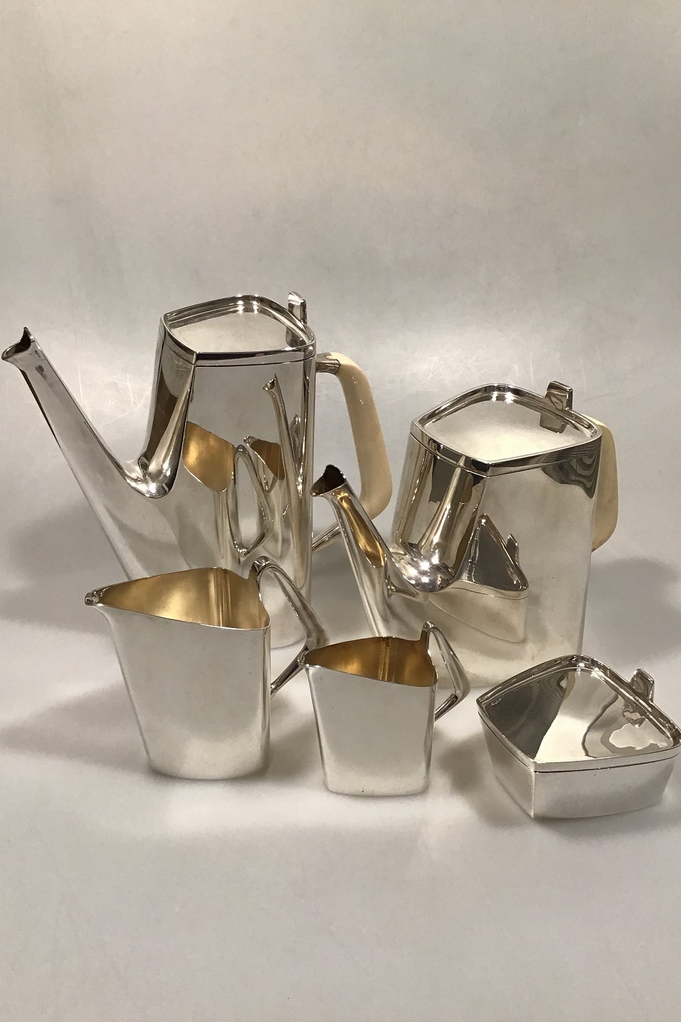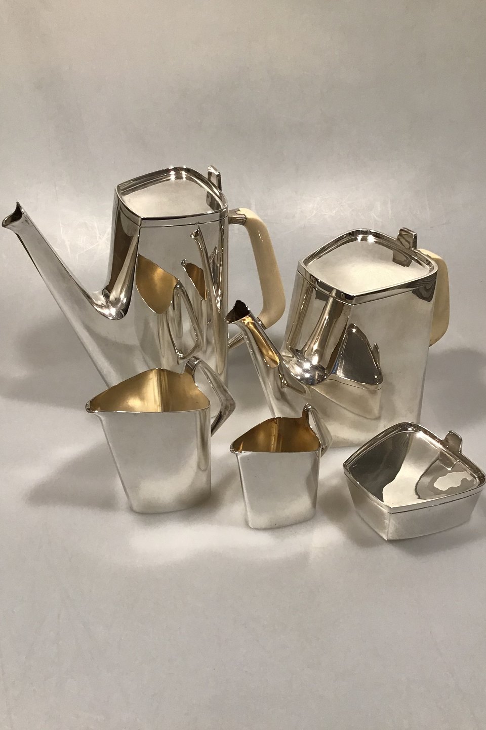 Cohr Sterling Silver Coffee/Tea Set Hans Bunde Measures Coffee Pot 21.5 cm(873 gr)(8 15/32 in/30.79 oz) Tea Pot 17 cm(896gr)6 11/16 in/31.60 oz) Water Jug 11cm(264 gr) 4 21/64 in/9.31 oz) Creamer 8.5 cm (139 gr)(3 11/32 in/4.90 oz)(Sugar Bowl 6cm(230 gr)2 23/64 in/8.11 oz)