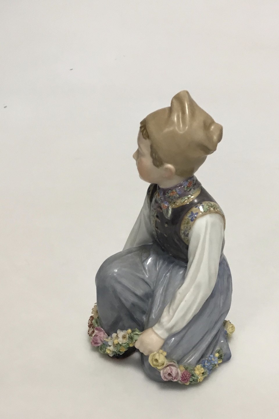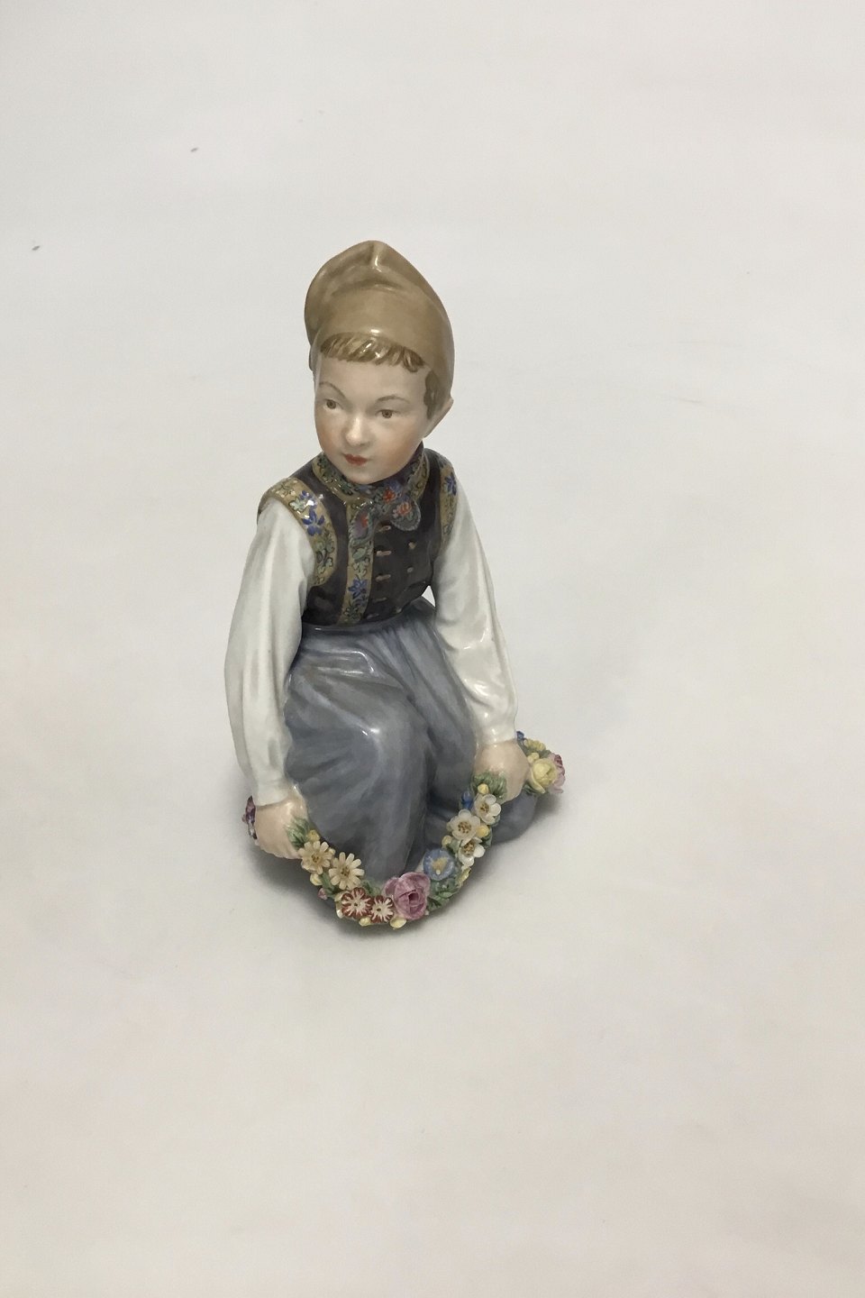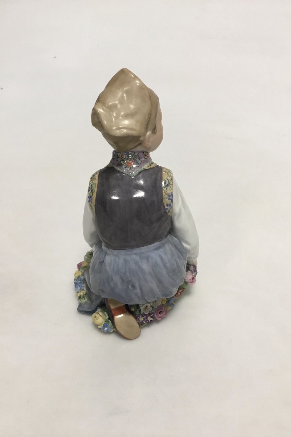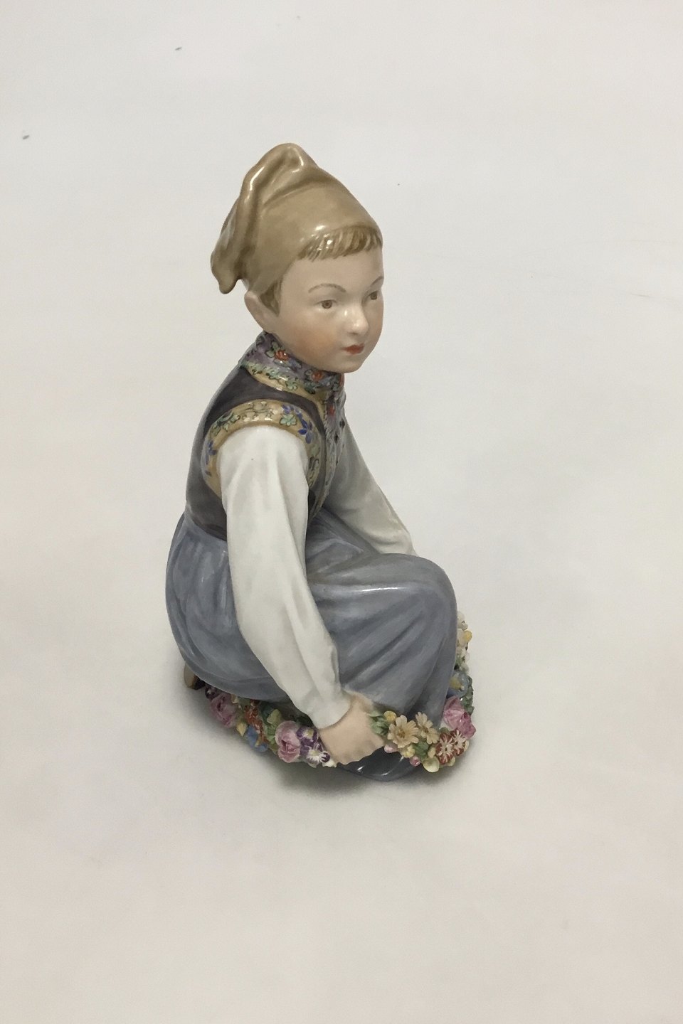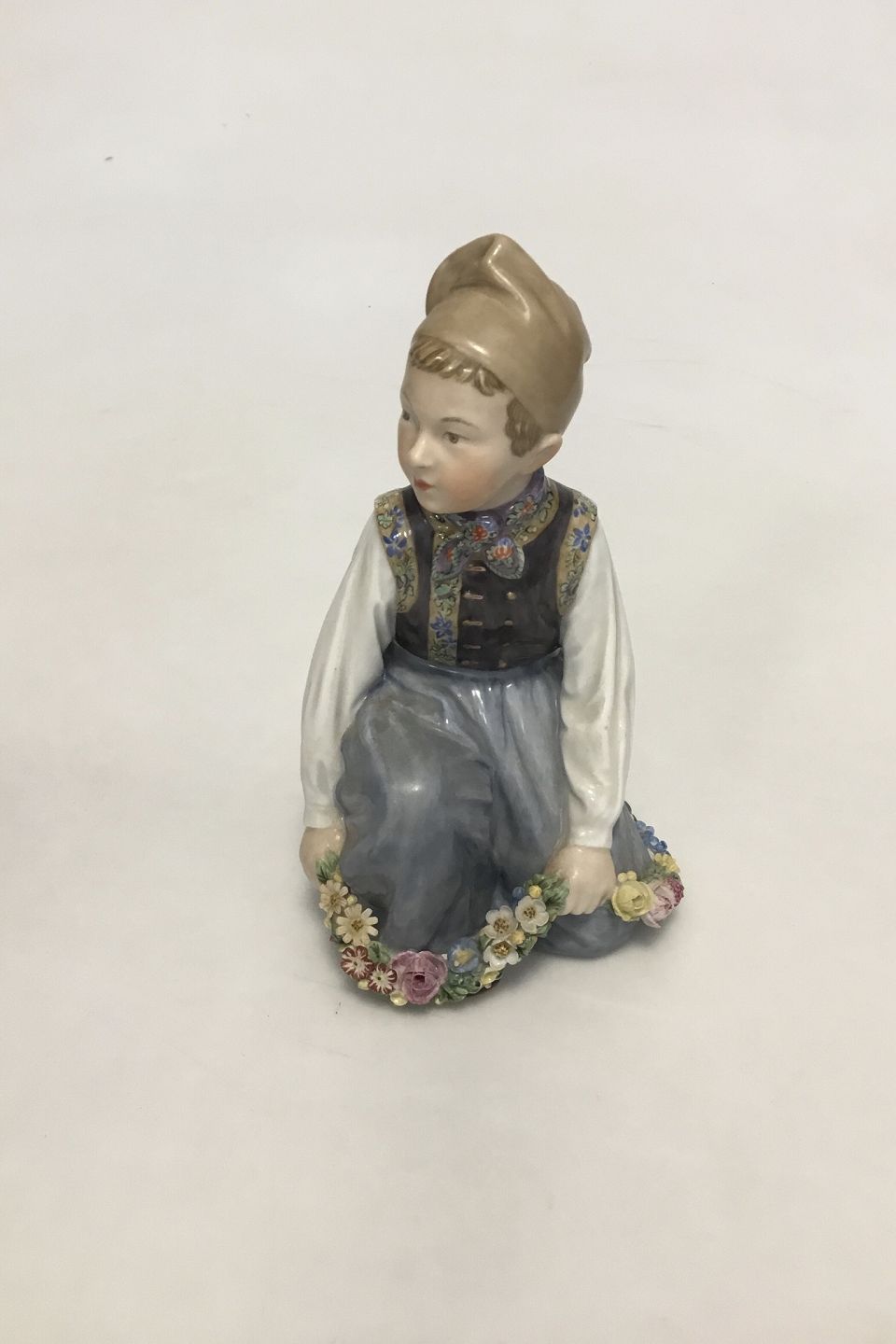 Royal Copenhagen overglaze figurine Amager Boy nr. 12414. Measures 15cm and has minimal chips on flowers. Please look at all photos, thanks!