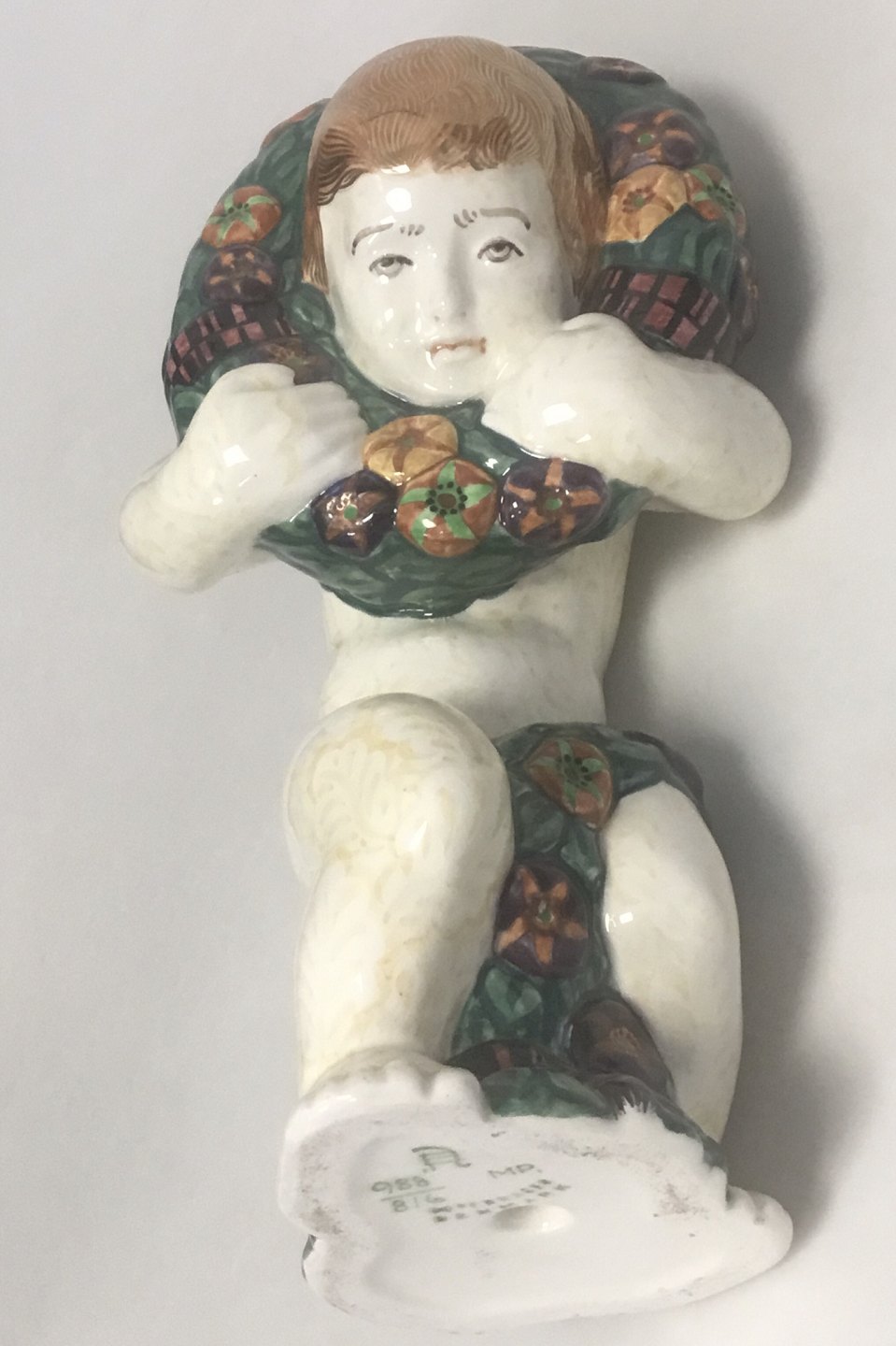Aluminia by Rasmus Harboe. Angel with flowers around head no. 988/816. Made in year 1913. Measures 26,5 cm (10 7/16"). See other listing for Angel with flowers around body.