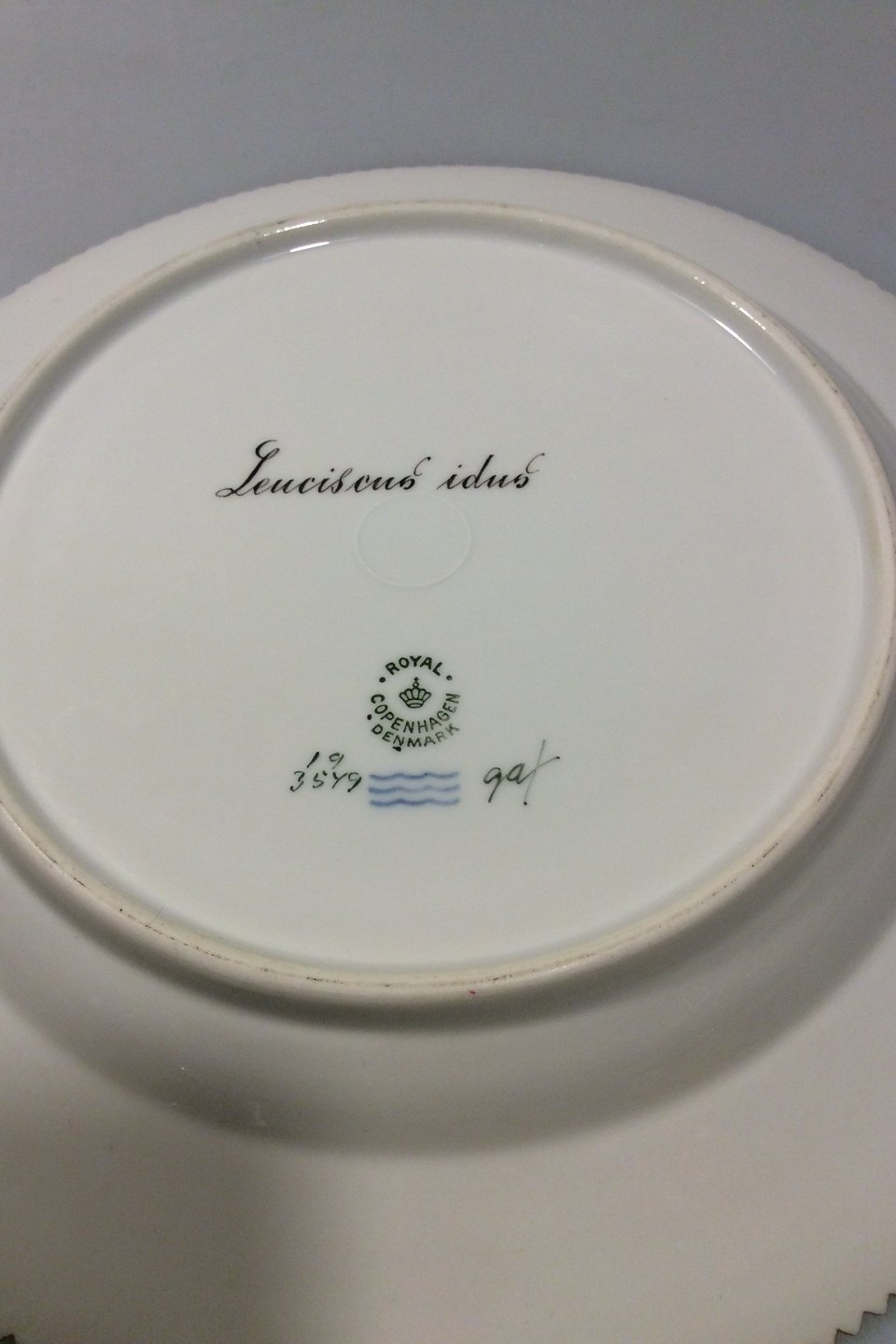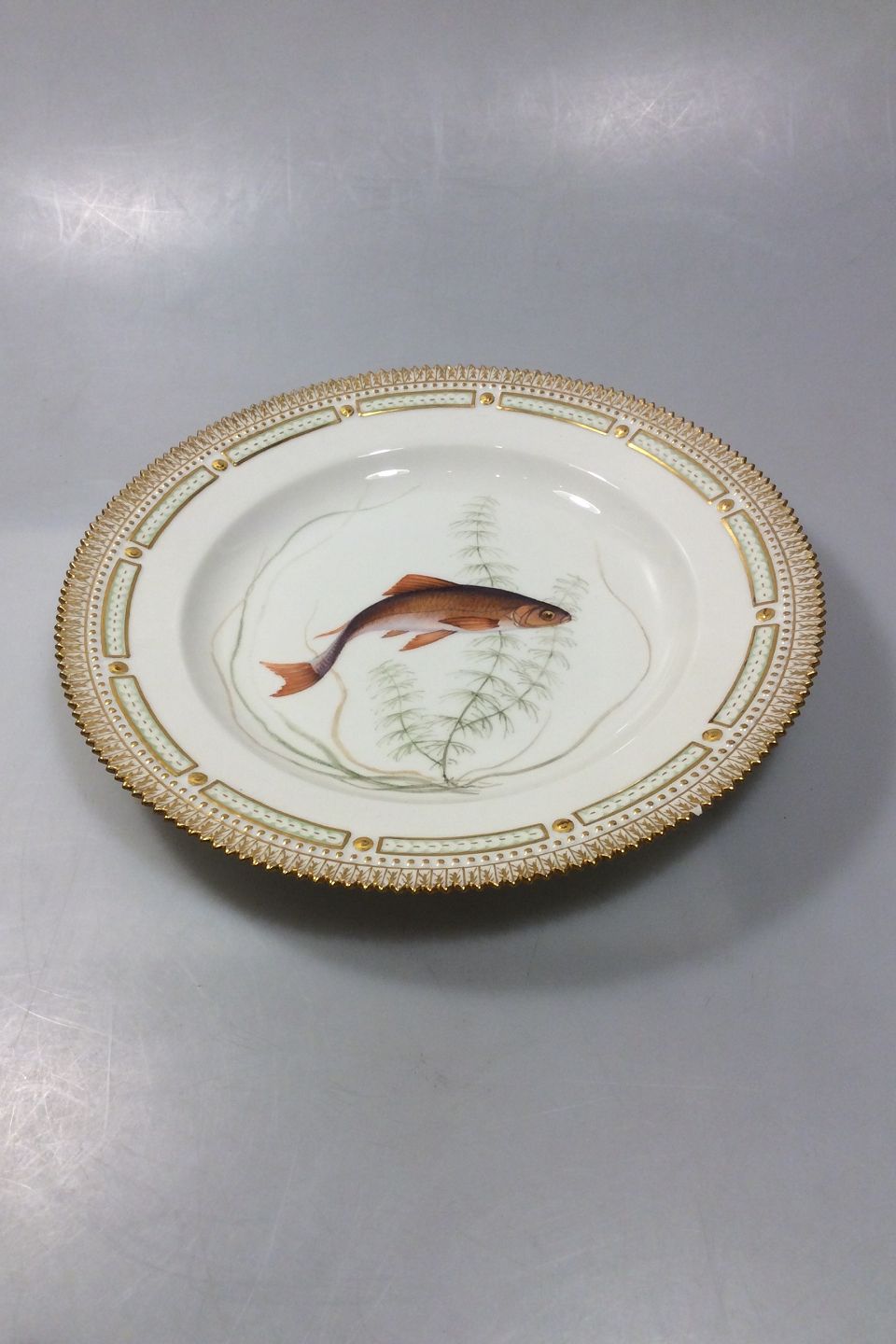 Royal Copenhagen Flora Danica Fish Plate No 19/3549. Latin name: Leucicus idus. Measures 25.8 cm / 10 5/32 in.