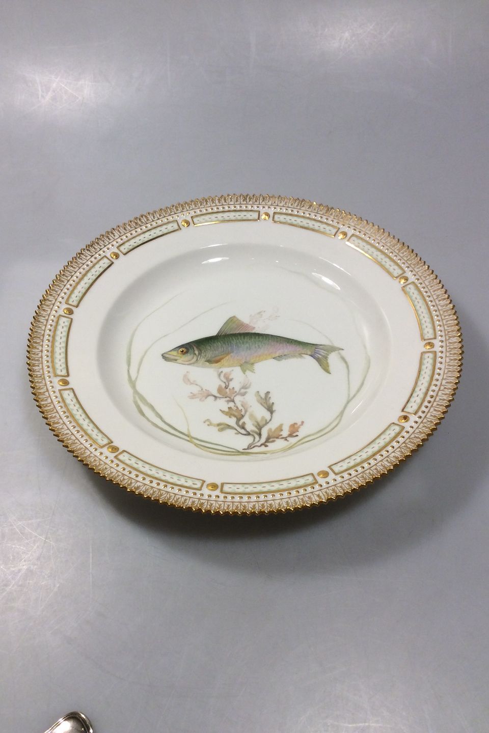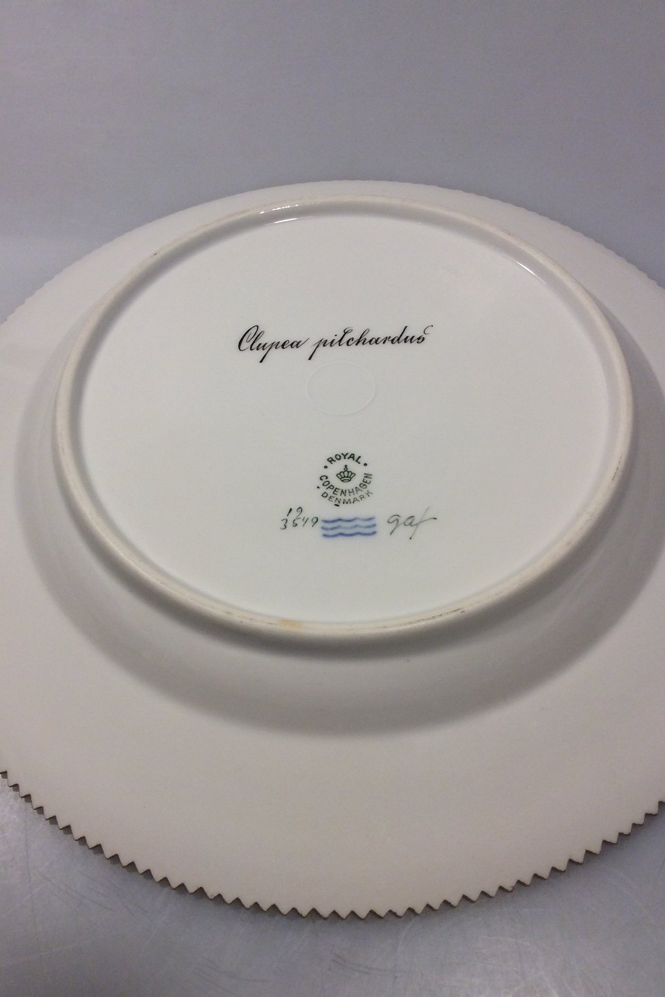 Royal Copenhagen Flora Danica Fish Plate No 19/3549. Latin name: Clupea pilchardus. Measures 25.8 cm / 10 5/32 in.