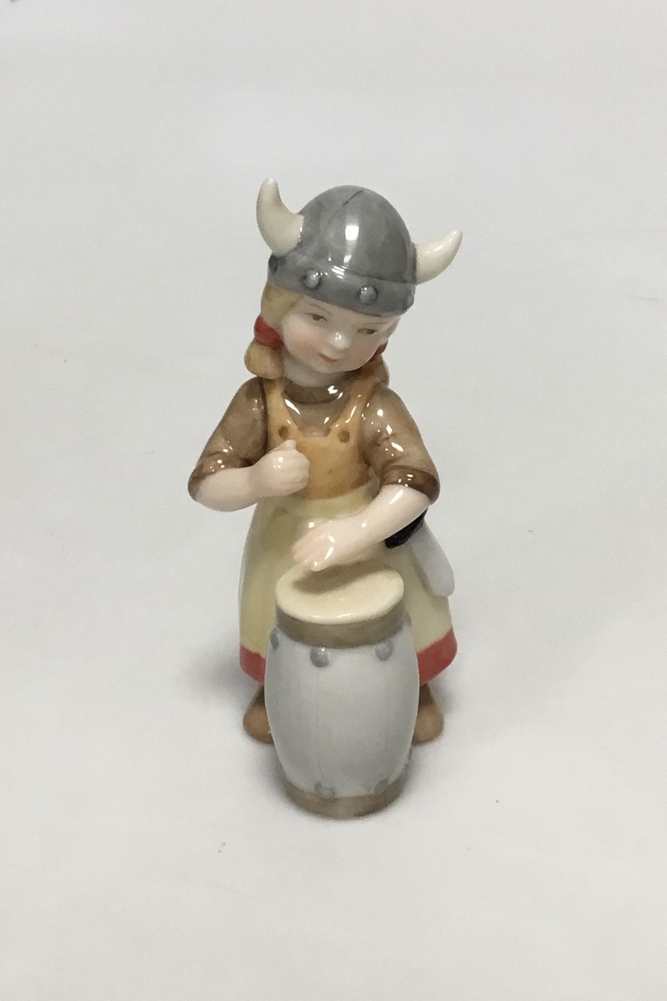Royal Copenhagen Mini Collection. Viking girl Nanna playing the drum. No. 163. Year: 2005. H: 11,5 cm (4 17/32")