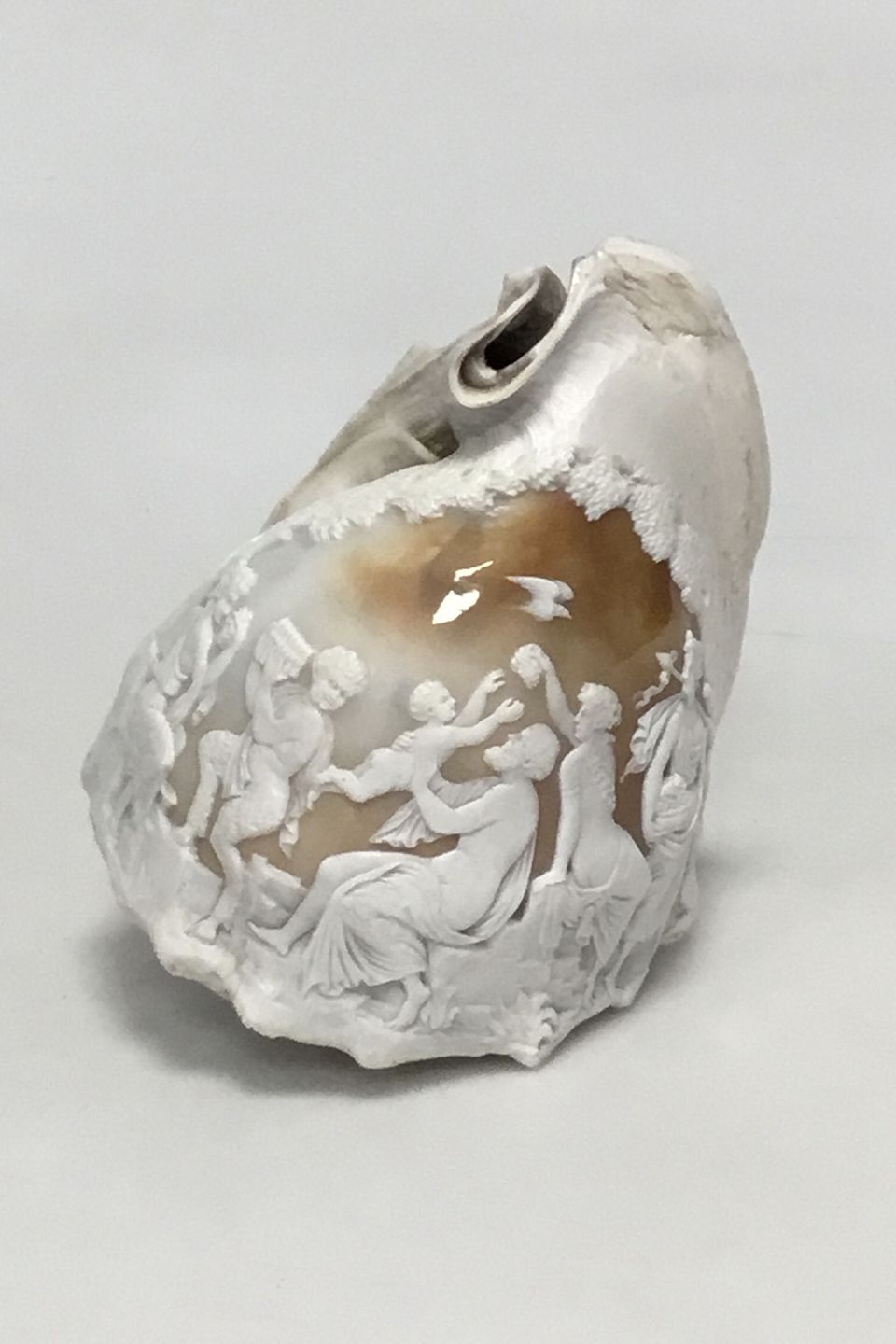 Cameo carved conch with classic motives. Victorian era ca. 1880. H: 15,5 cm (6 7/64")