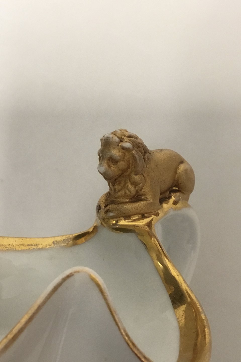 Bing & Grondahl Lion Chocolate Ewer, gold painted, without lid. Stamped B & G in under glaze blue. Several damages, please see pictures. H: 26 cm (10 15/64")
