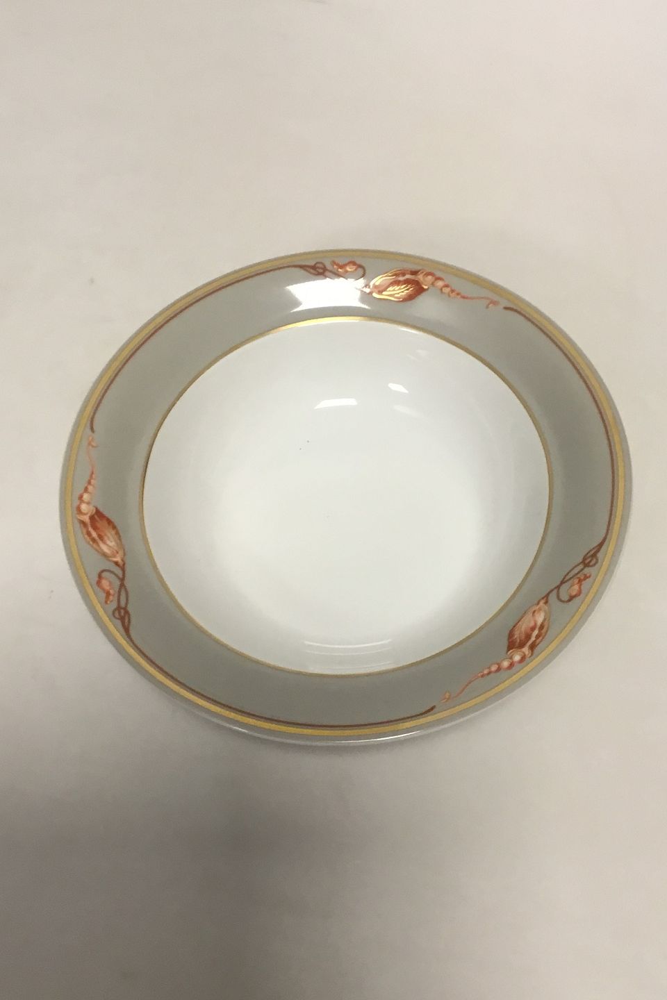 Royal Copenhagen Magnolia, Grey with red decoration Cereal Bowl. Measures 18 cm / 7 3/32 in.