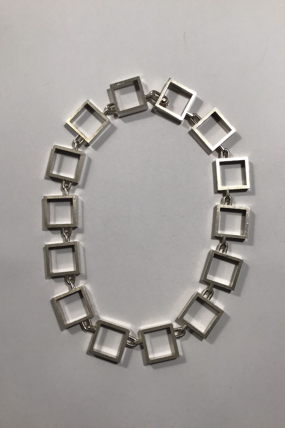 Hans Hansen Sterling Silver Necklace Measures 40.5 cm( 15 15/16 in) Weight 133.3 gr/4.70 oz(The "squares" measure 2 cm x 2 cm/0 25/32 in x 0 25/32 in)