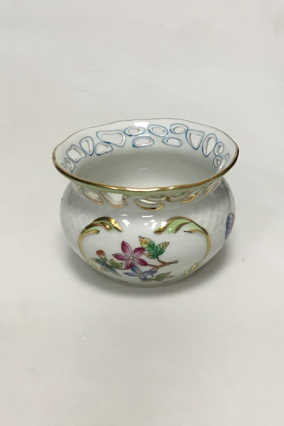 Herend Queen Victoria green Vase with Pierced border