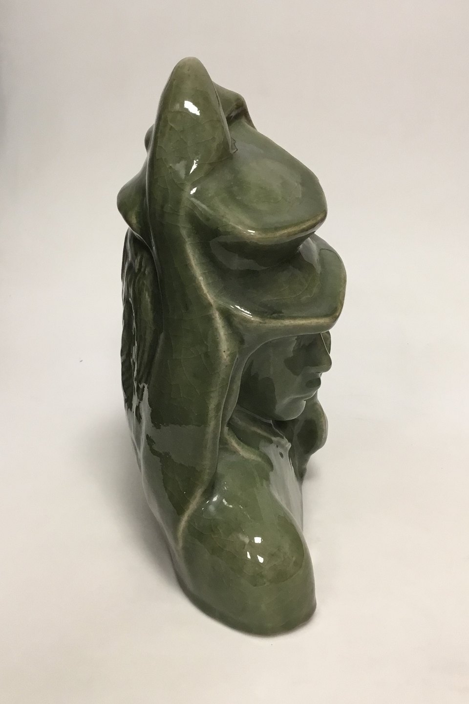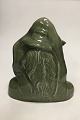 Royal Copenhagen Figurine of Stoneware "Girl with Hat" with Green Glaze No 20874