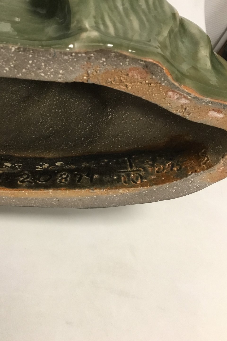 Royal Copenhagen Figurine of Stoneware "Girl with Hat" with Green Glaze No 20874. Designed by Helge Christoffersen in jan. 1948. Nr 1/10, 2nd Quality. Measures 37 cm / 14 9/16 in. Glaze with Crackles