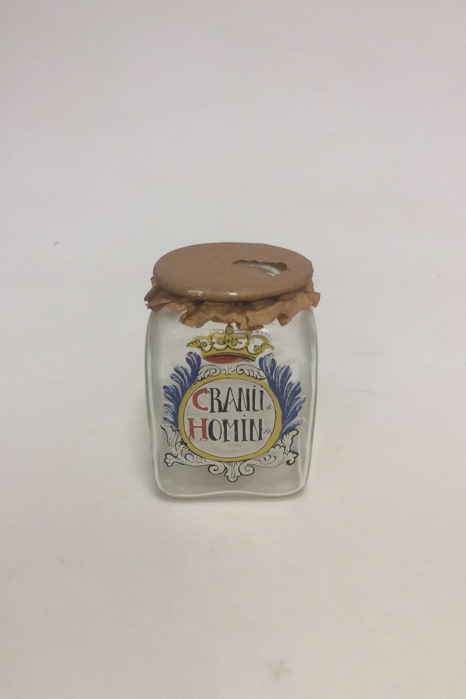Holmegaard Pharmacy Jar with the text "GRANUI HOMIN"from 1988.