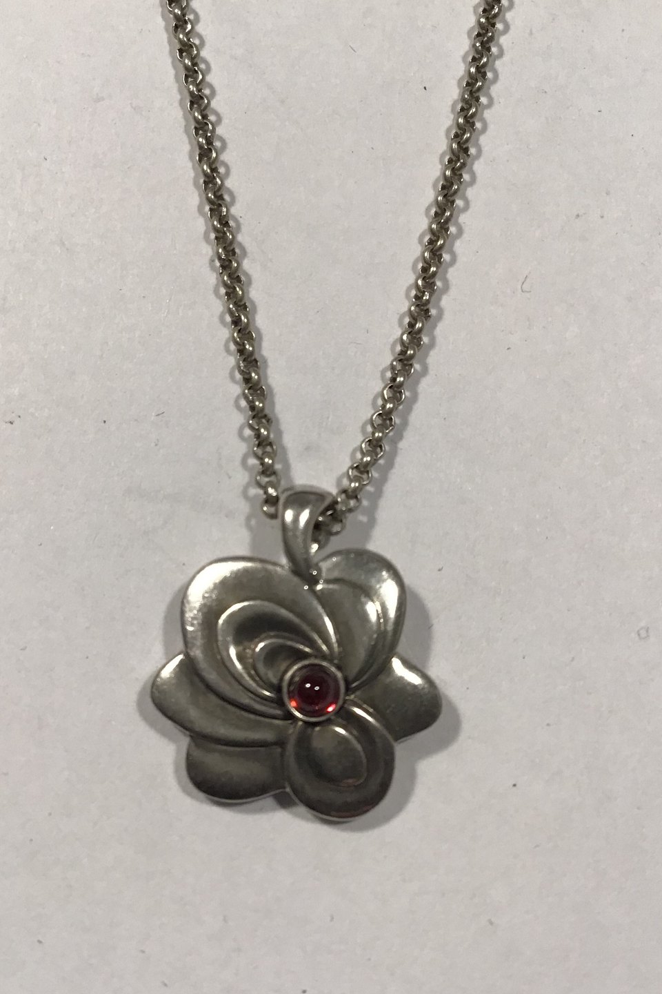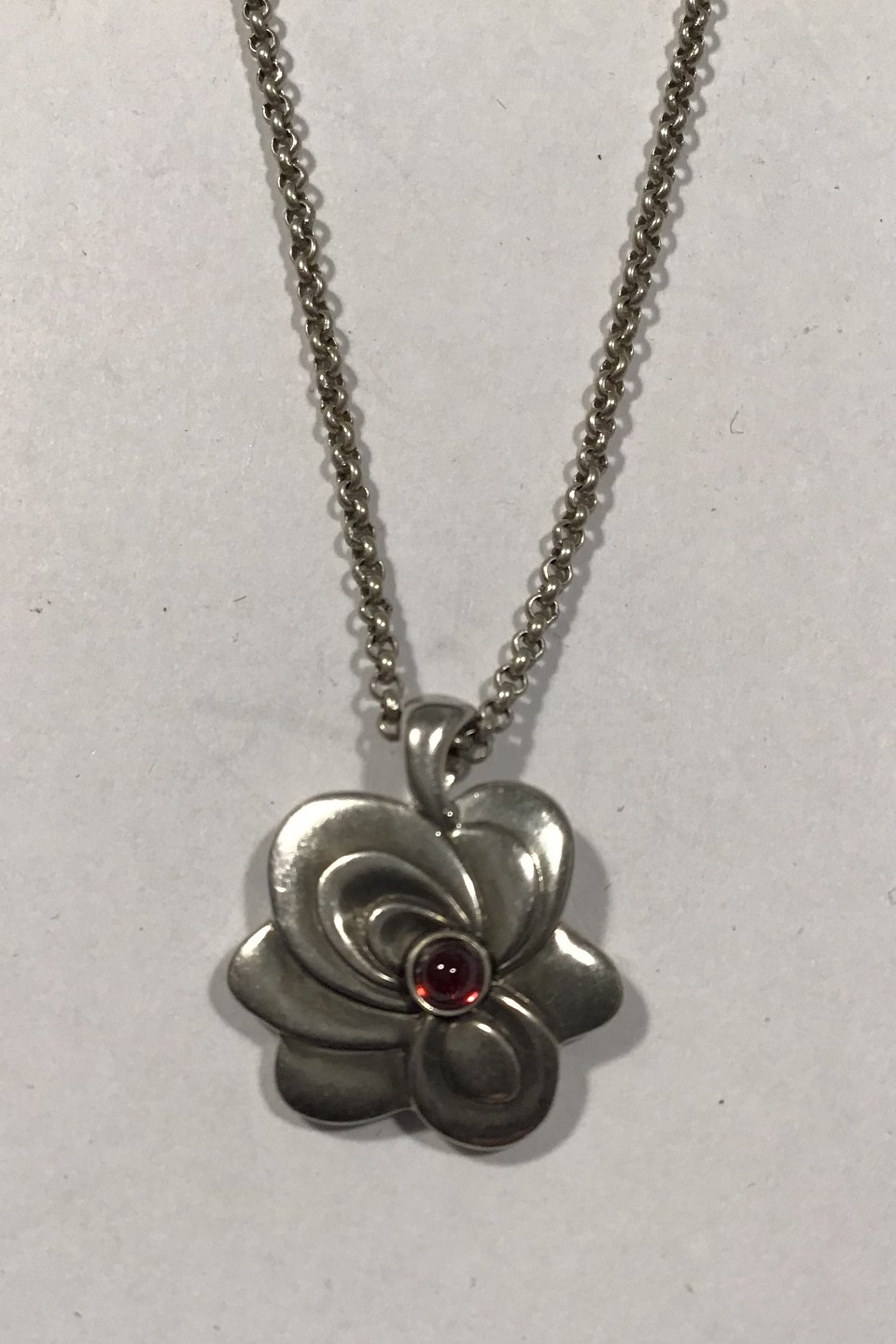 Georg Jensen Sterling Silver Necklace with Pendant No 263 with garnet Measures 44 cm (17 21/64 in)Weight 7.3gr/0.26 oz