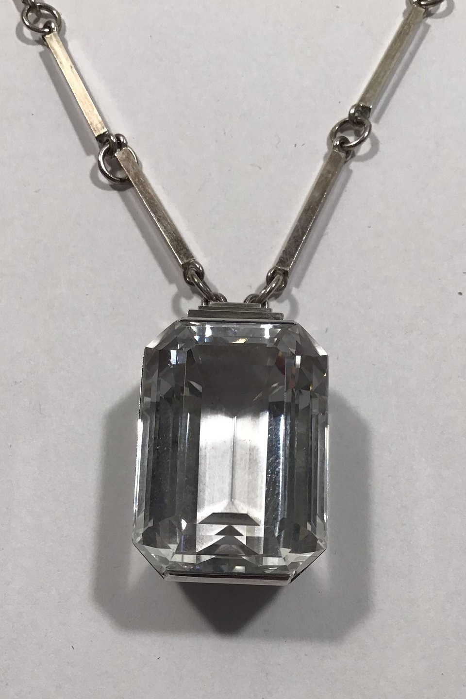 Wiwen Nilsson Sterling Silver Necklace with Rock Crystal Pendant (U8 1946) Measures L 67 cm(26 3/8 in) Pendant 2 cm x 3.7 cm (0 25/32 in x 1 29/64 in)
