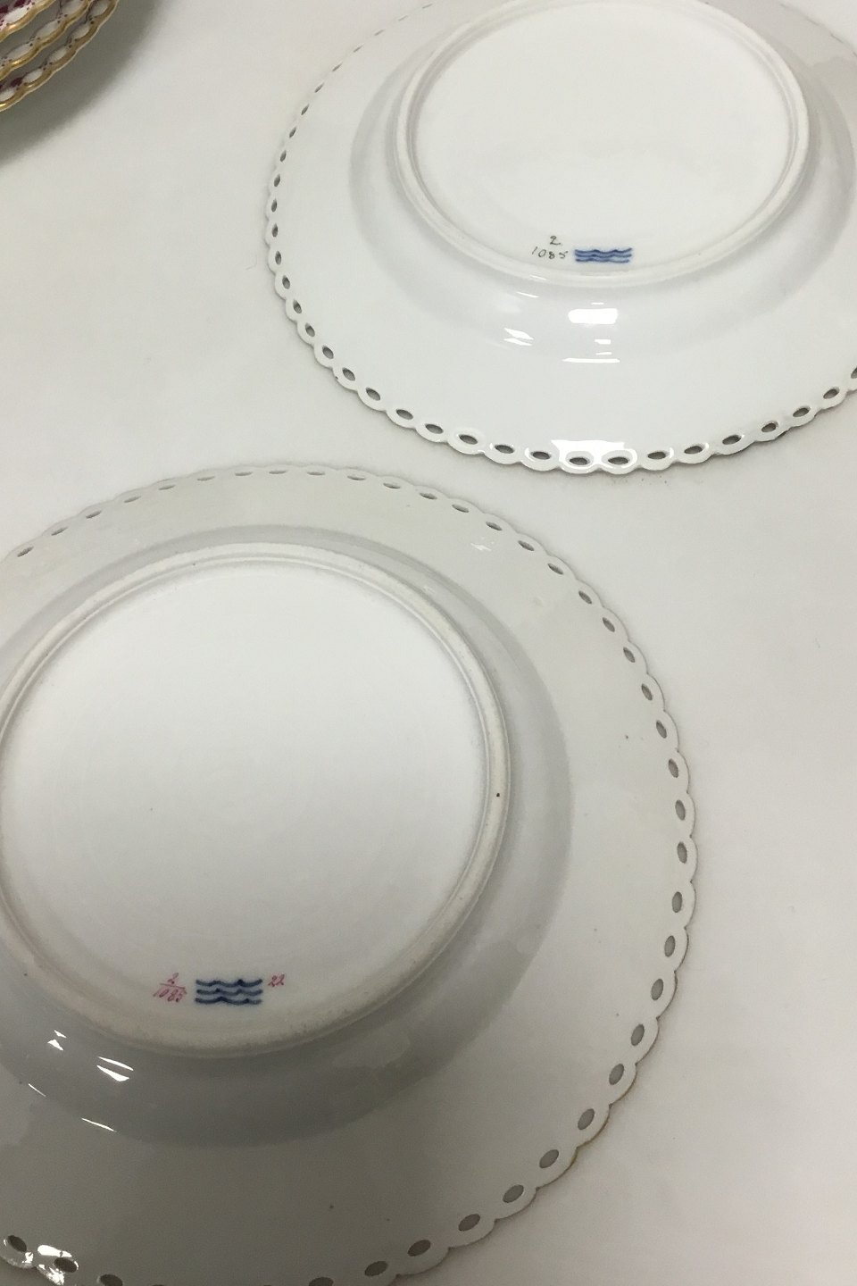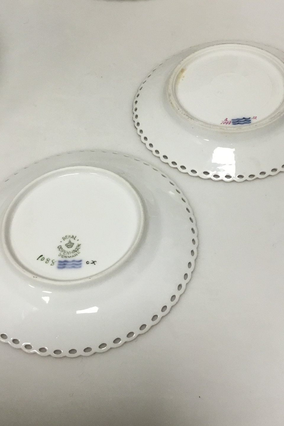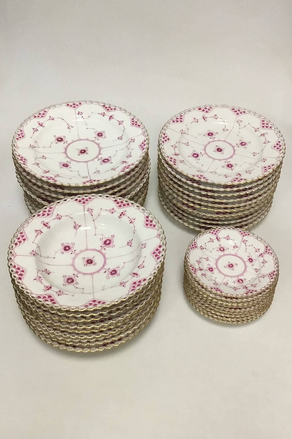 Royal Copenhagen Purpur Fulllace Fluted Various parts of dinnerware. All is 1st Quality, but there are repairs/chips on a total of 21 of the 39 parts. Some newer parts.