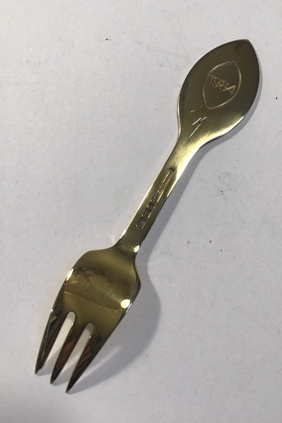 Anton Michelsen Christmas Pastry Fork 1984 Gilded Sterling Silver with Enamel